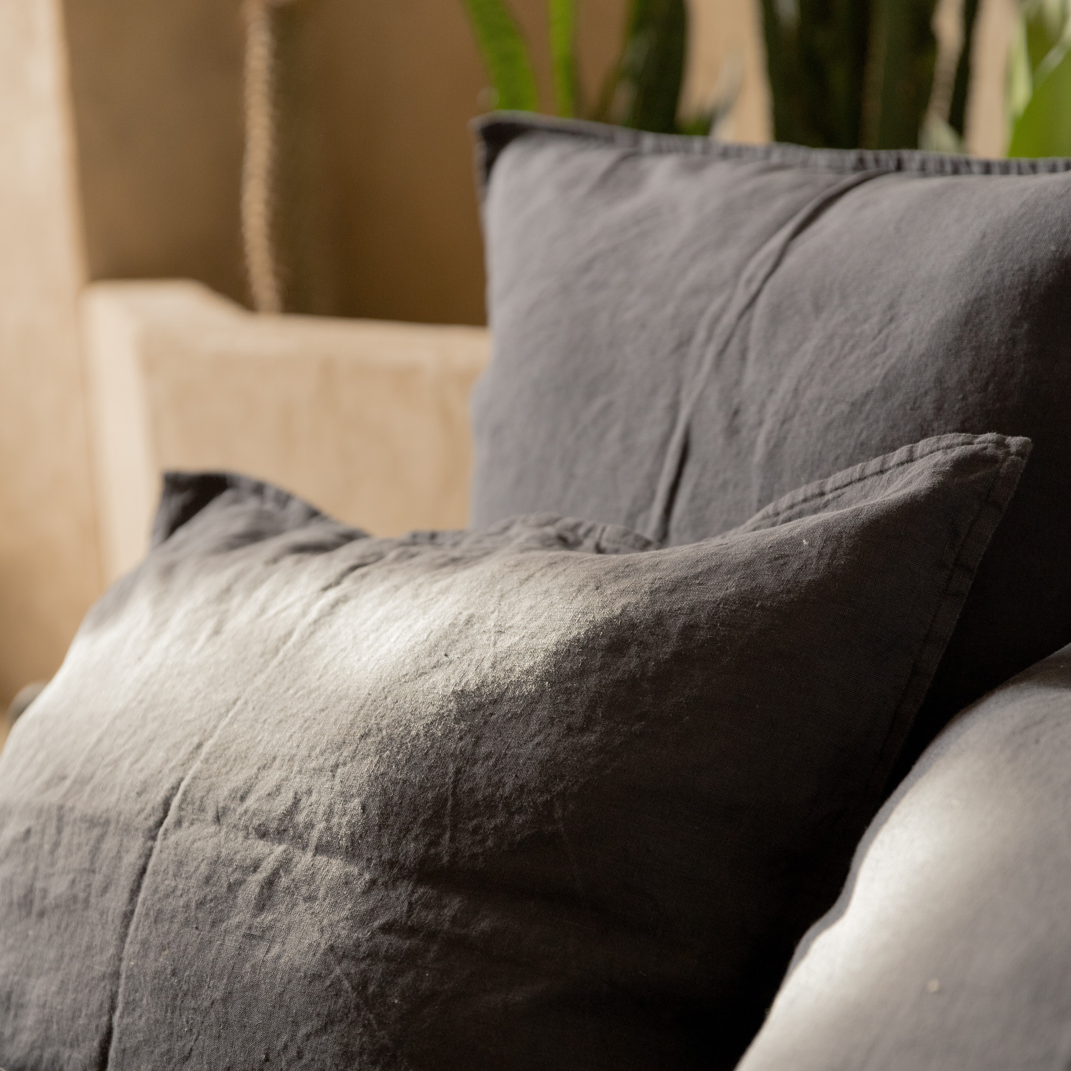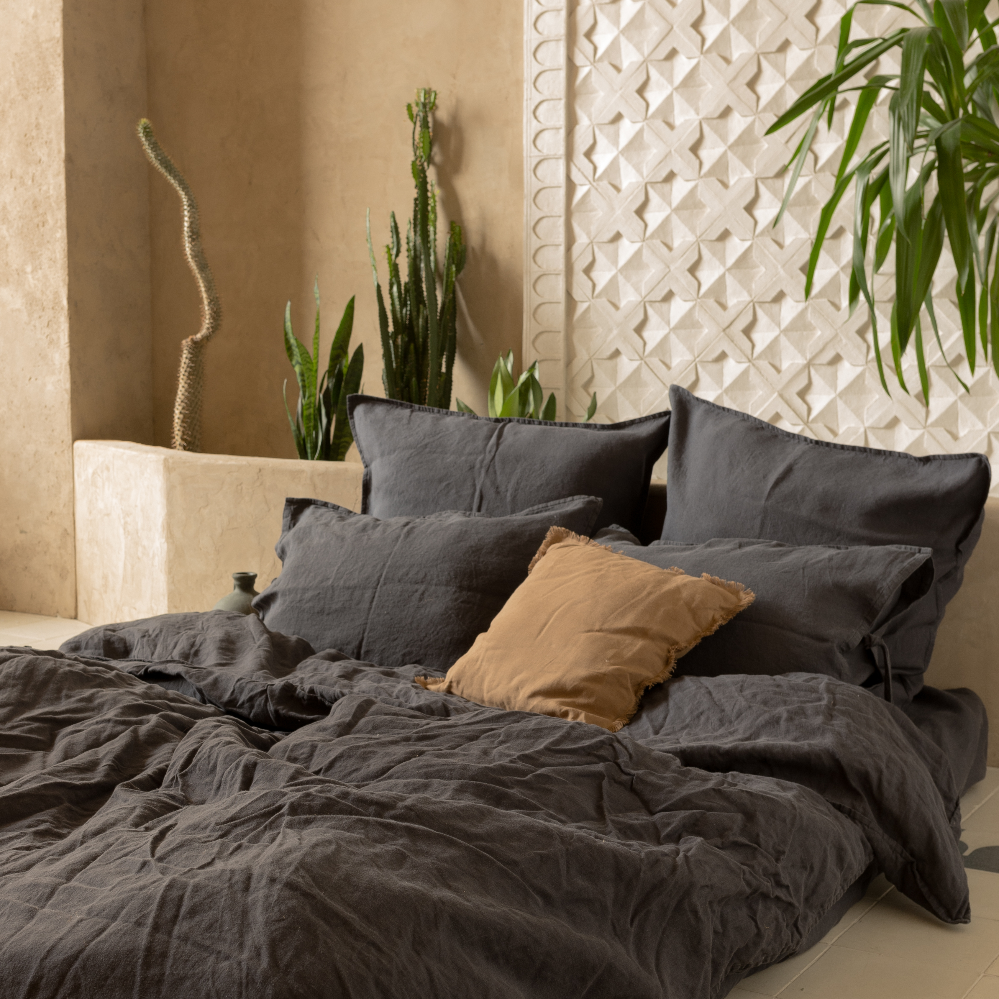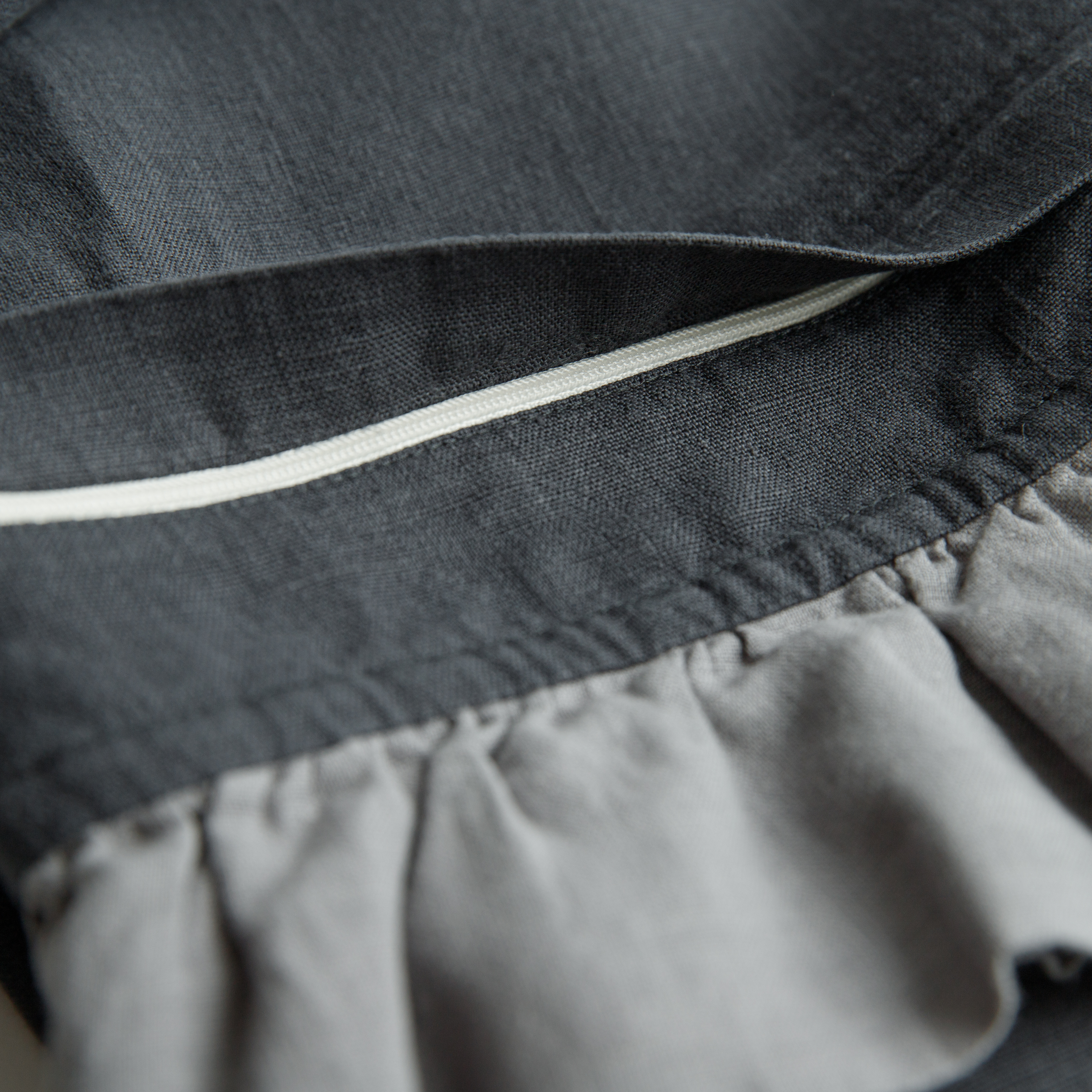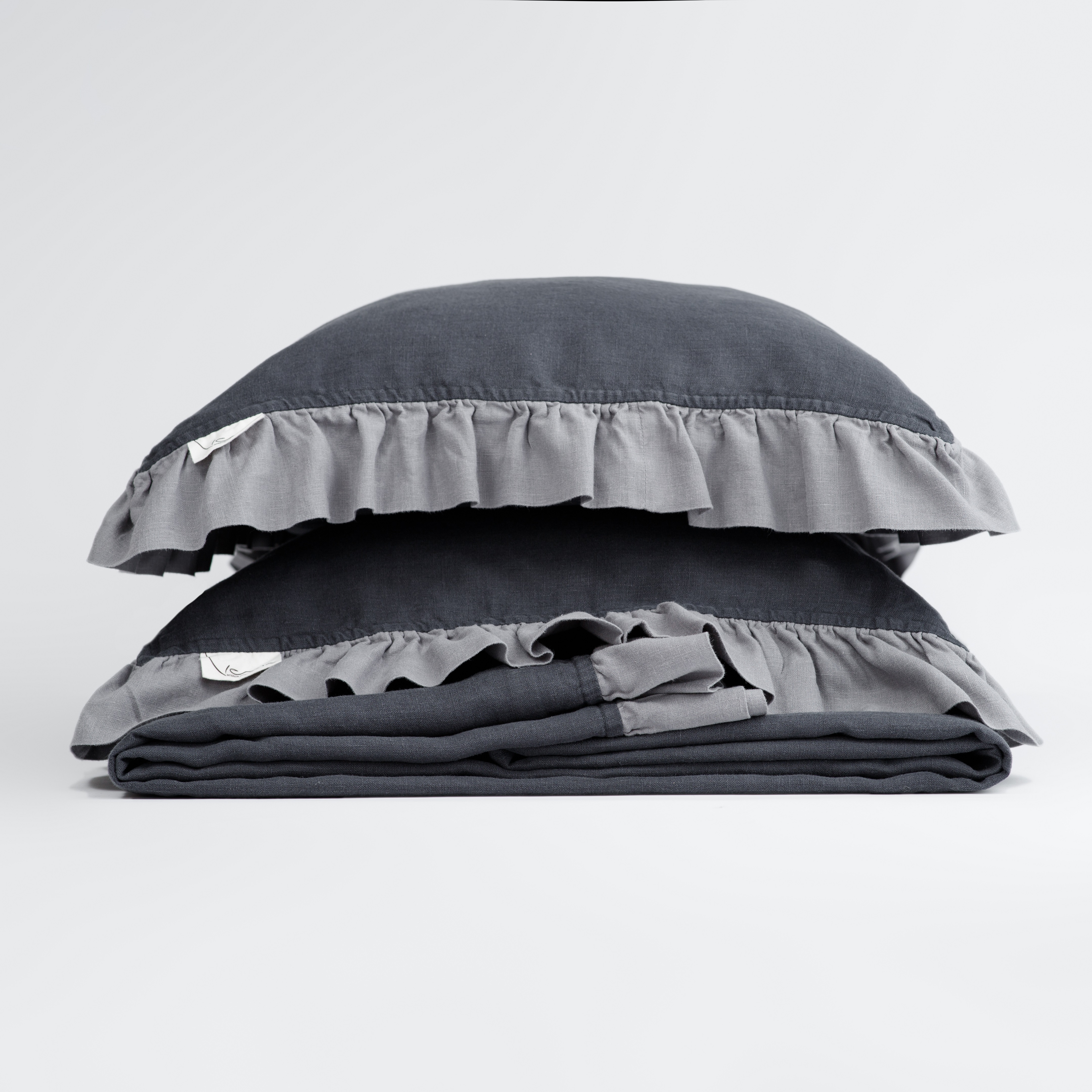 Комплект постельного белья VEXIN Графит с серым рюшем, Лен, наволочки 50x70