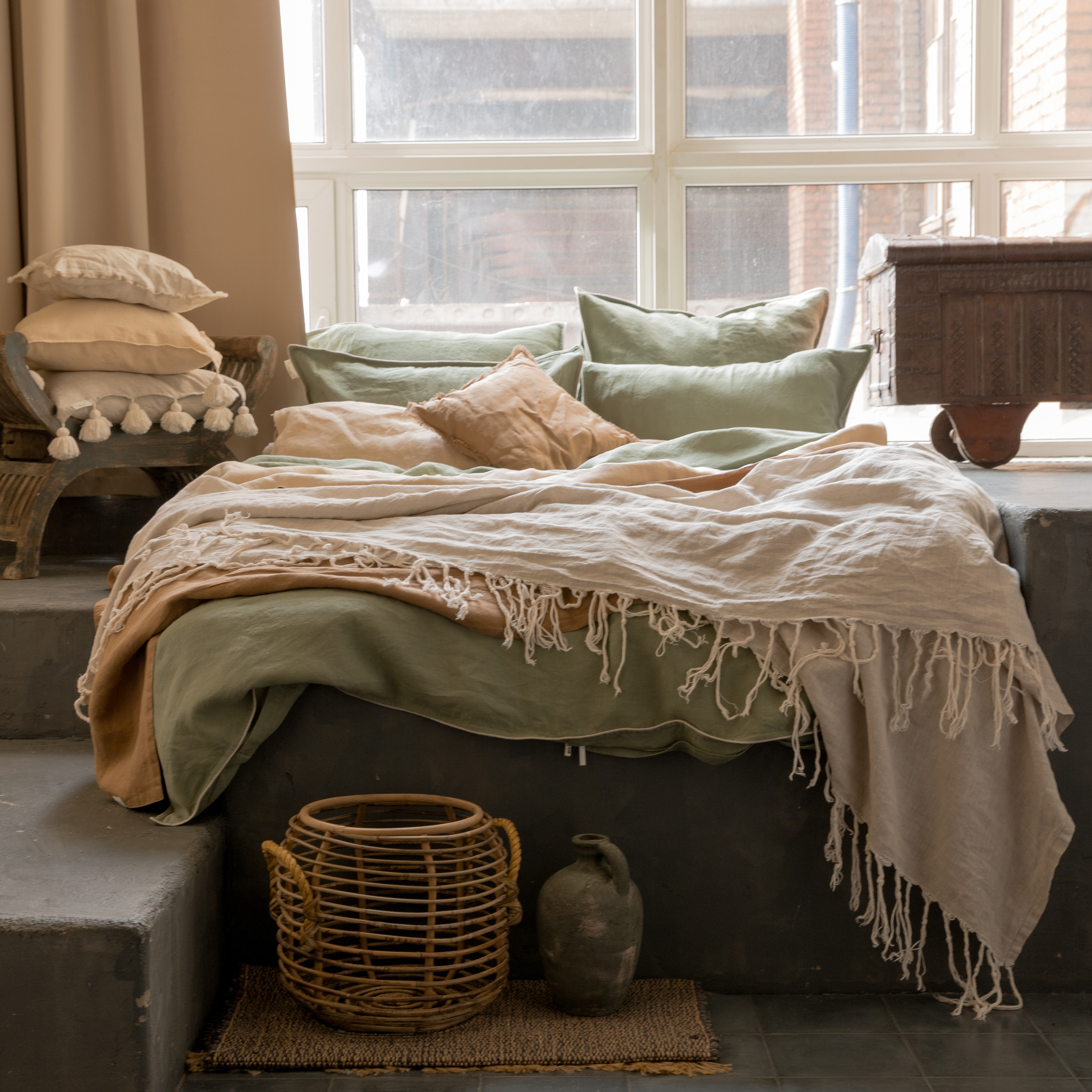 Комплект постельного белья VEXIN Молочный белый, Лен, наволочки 50x70