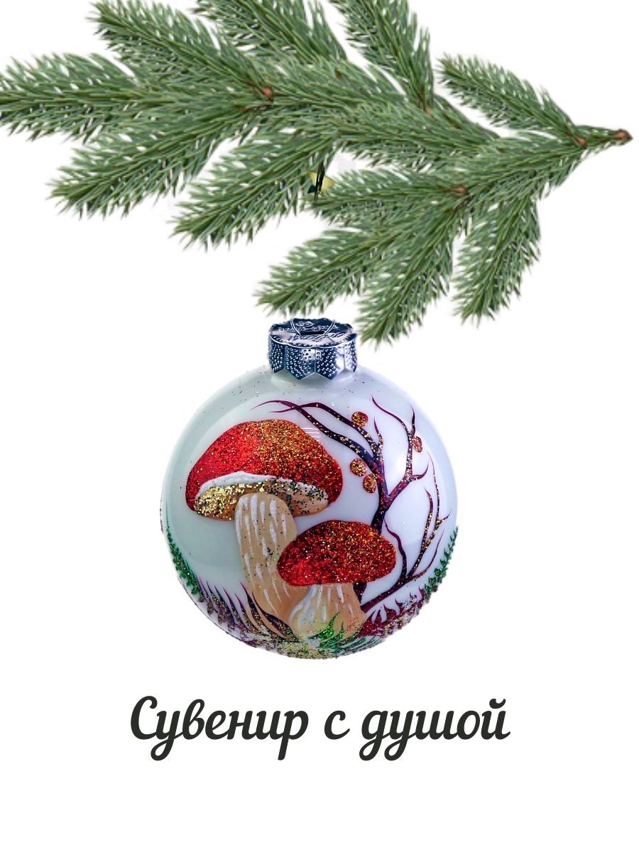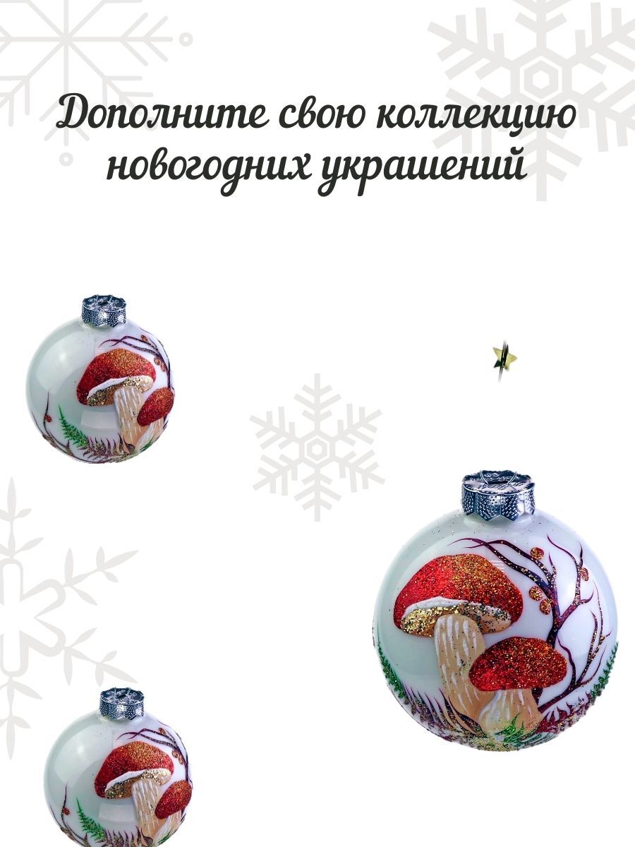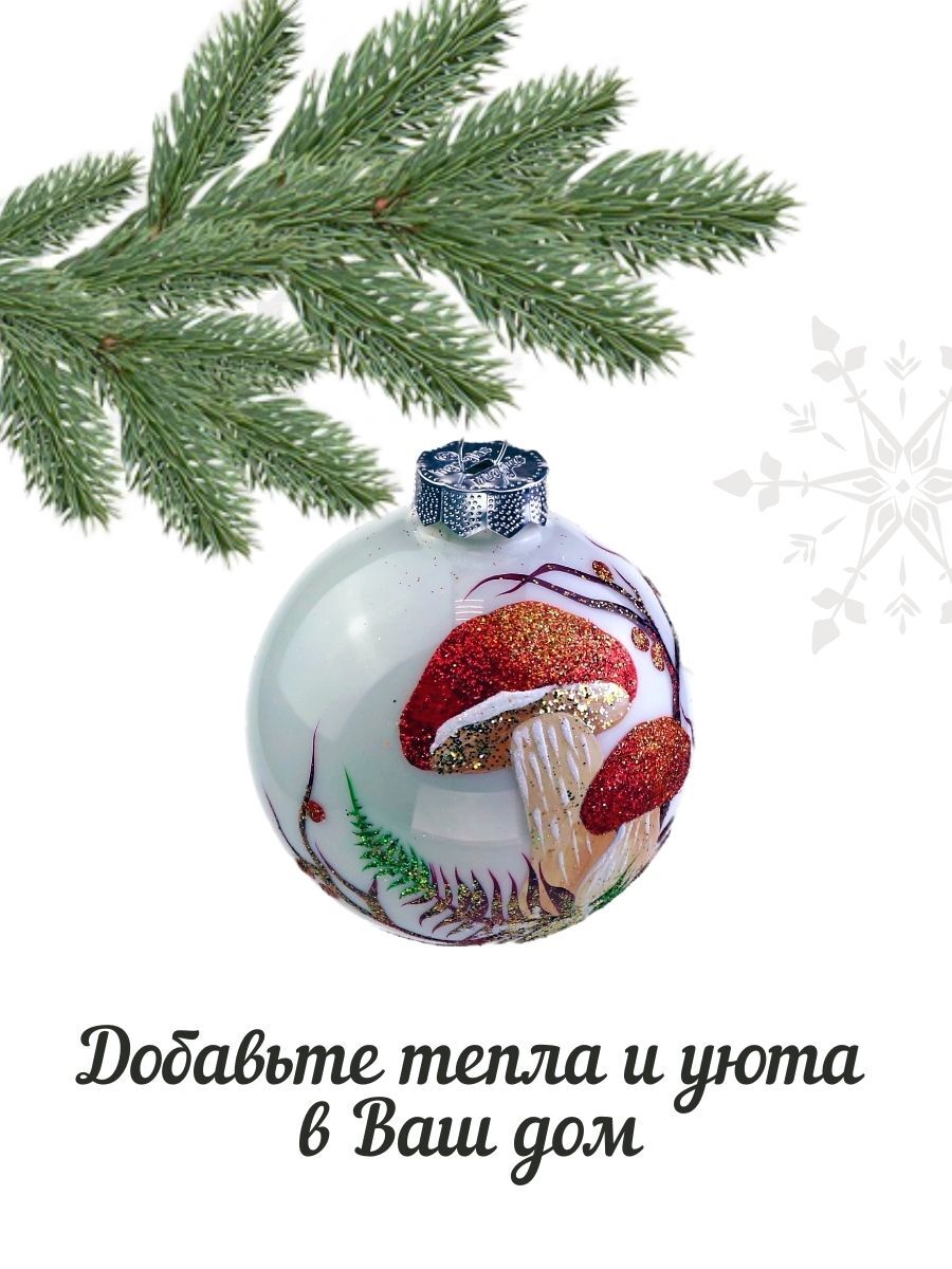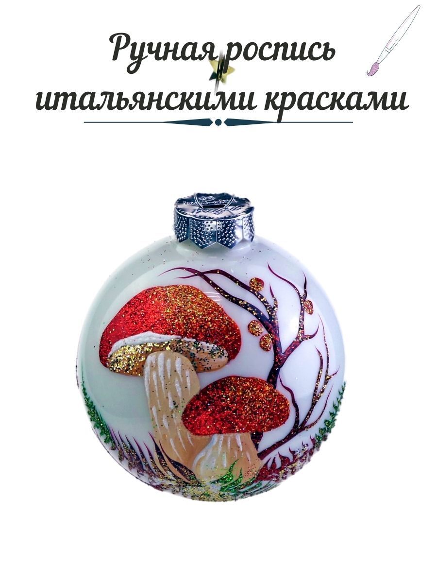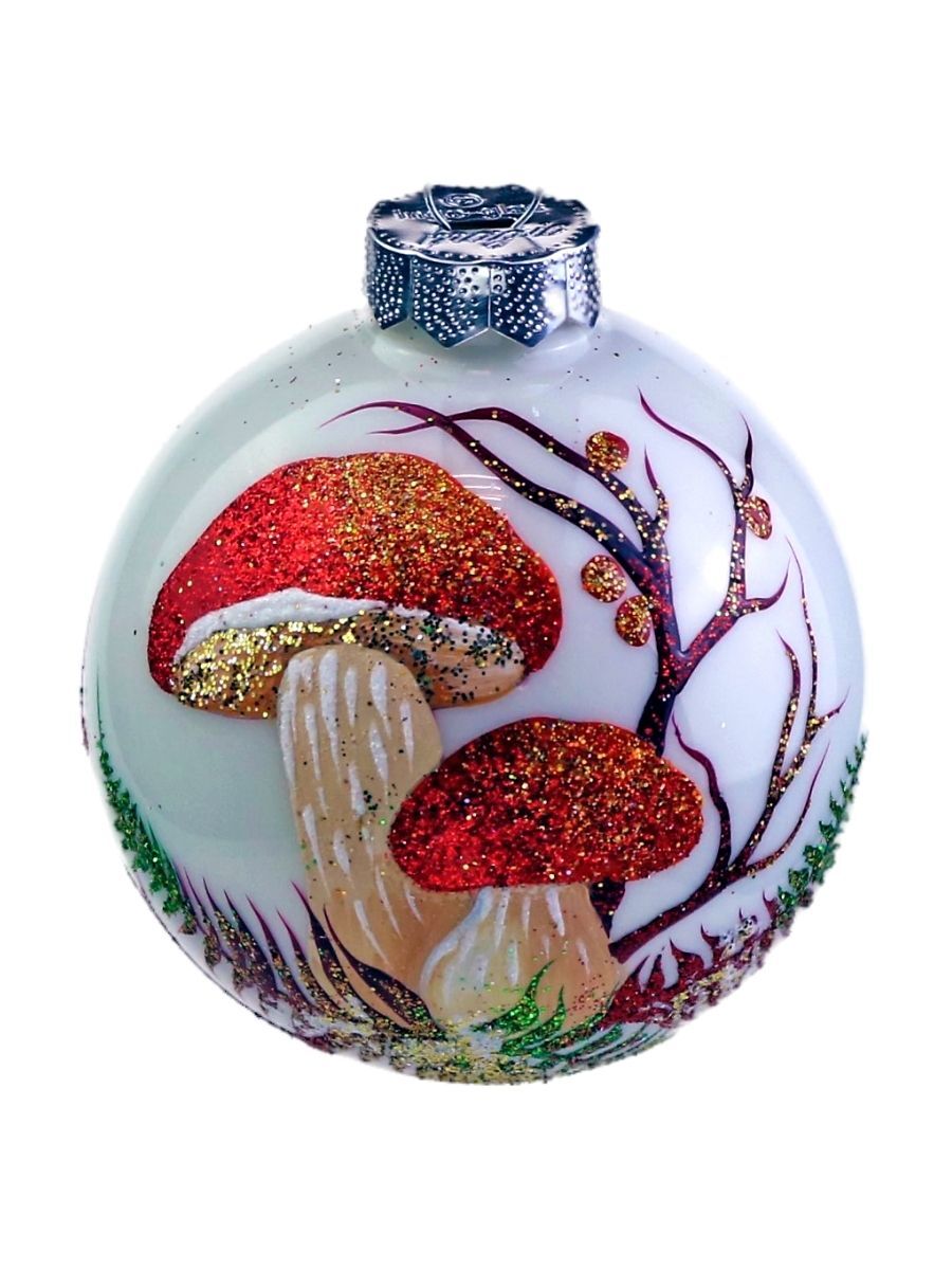 Ёлочный шар Victoria Bella "Грибы на белом фоне", диаметр 8,5 см, 1 шт