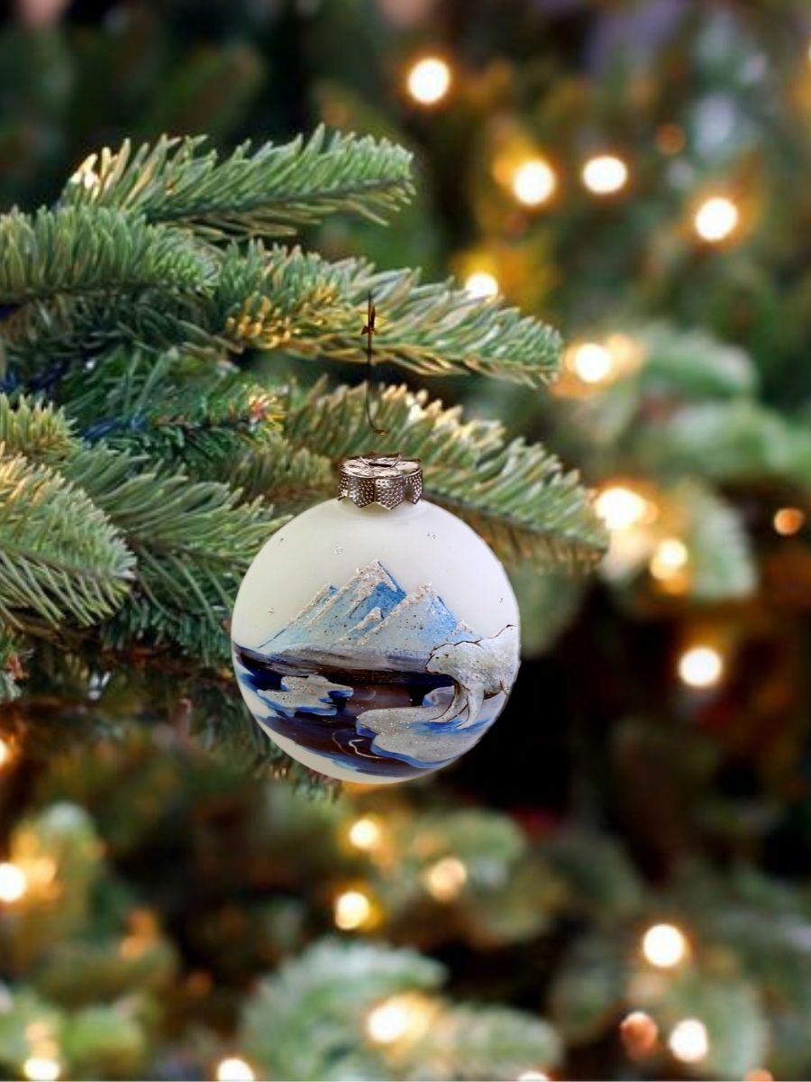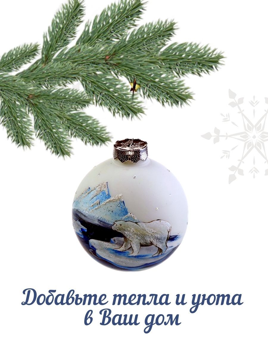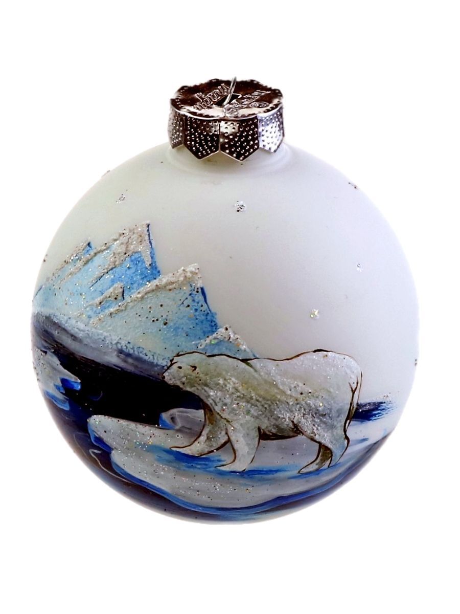 Ёлочный шар Victoria Bella "Белый медведь на льдине на белом фоне", диаметр 8,5 см, 1 шт