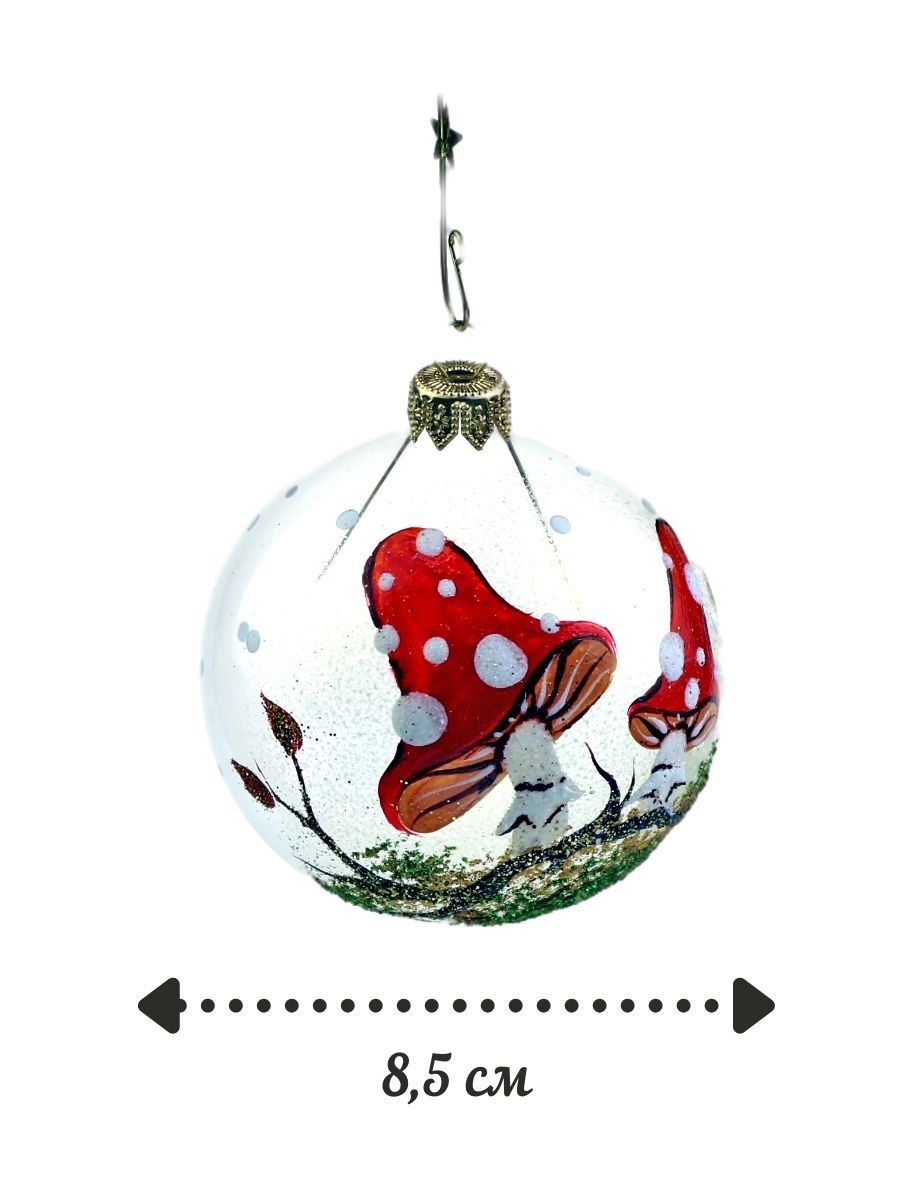 Ёлочный шар Victoria Bella "Мухомор на прозрачном фоне", диаметр 8,5 см, 1 шт