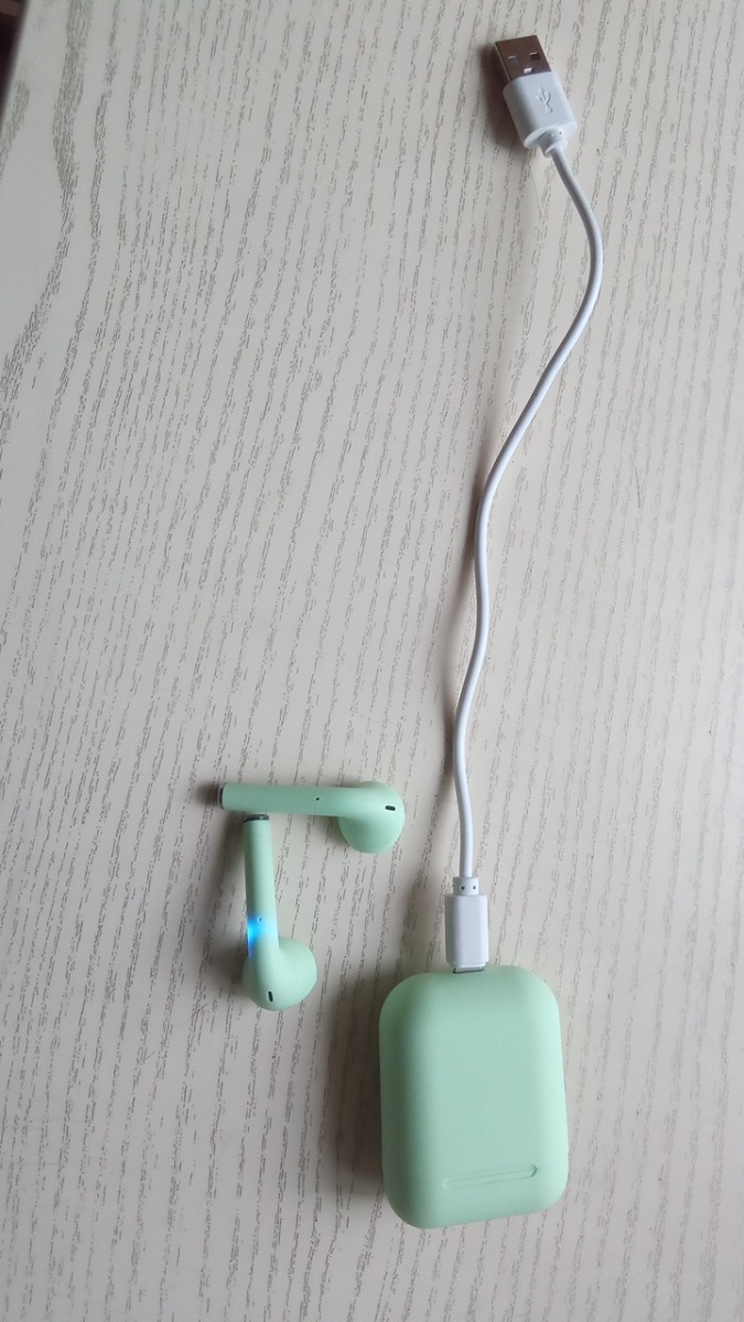 Наушники TWS i12 беспроводные Bluetooth, матовое soft-touch покрытие, цвет нежный зеленый