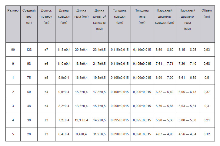 Пустые желатиновые капсулы размером 0, 500 штук.