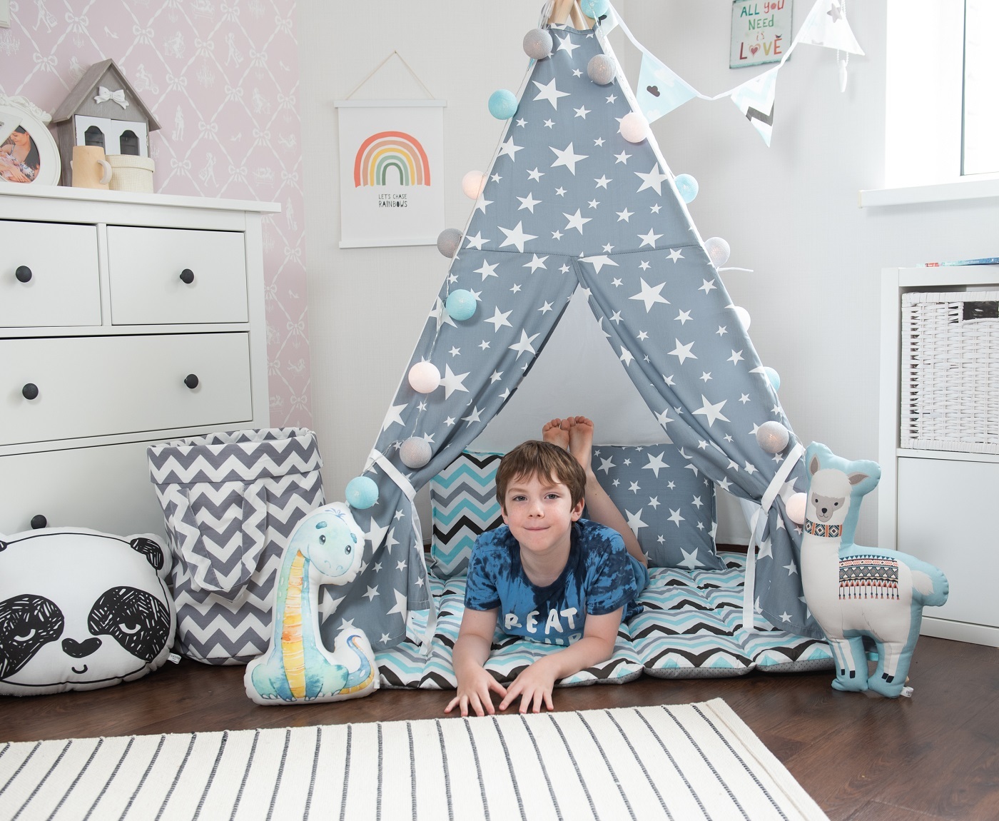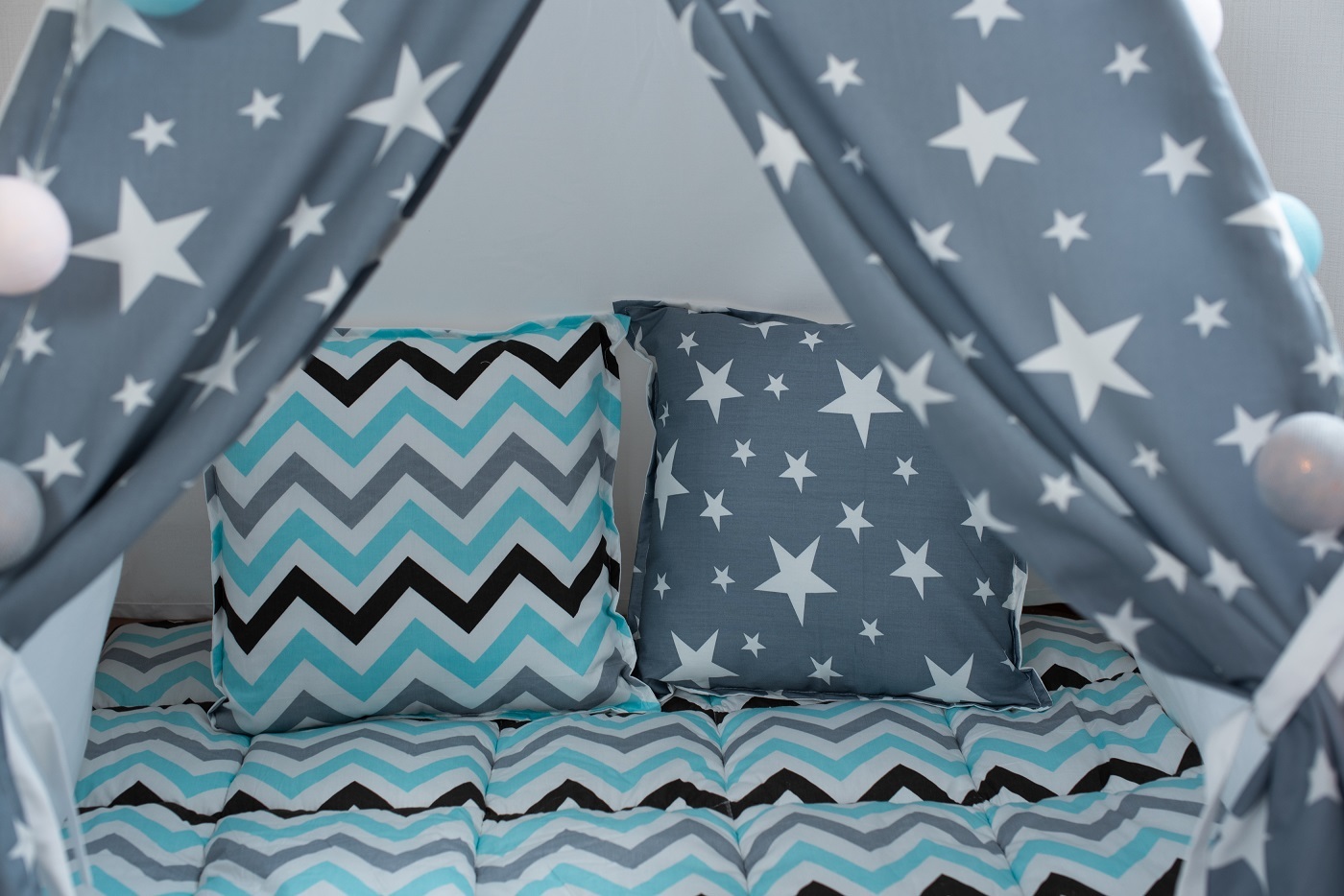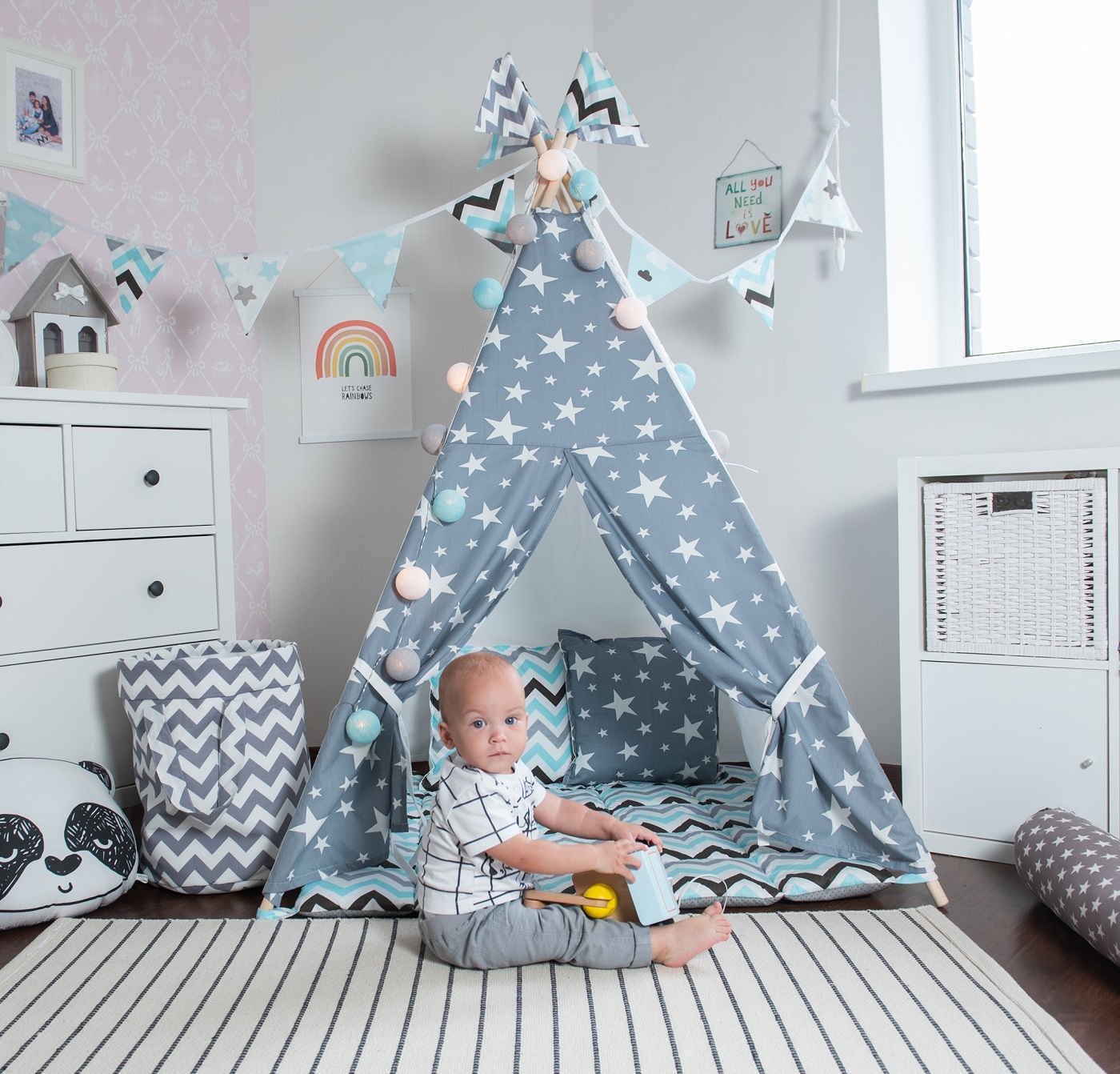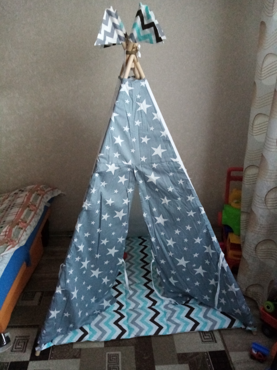 Детский вигвам "Серые звезды" с цельными палками 180см Vigvam Shop с флажками и системой антискладывания