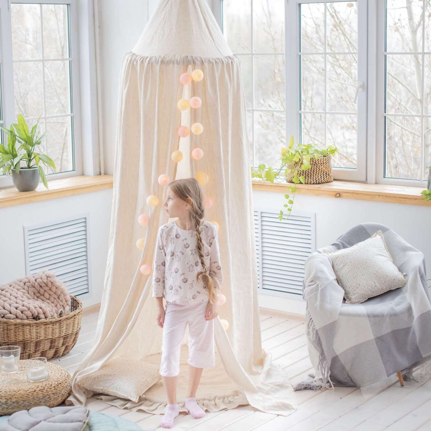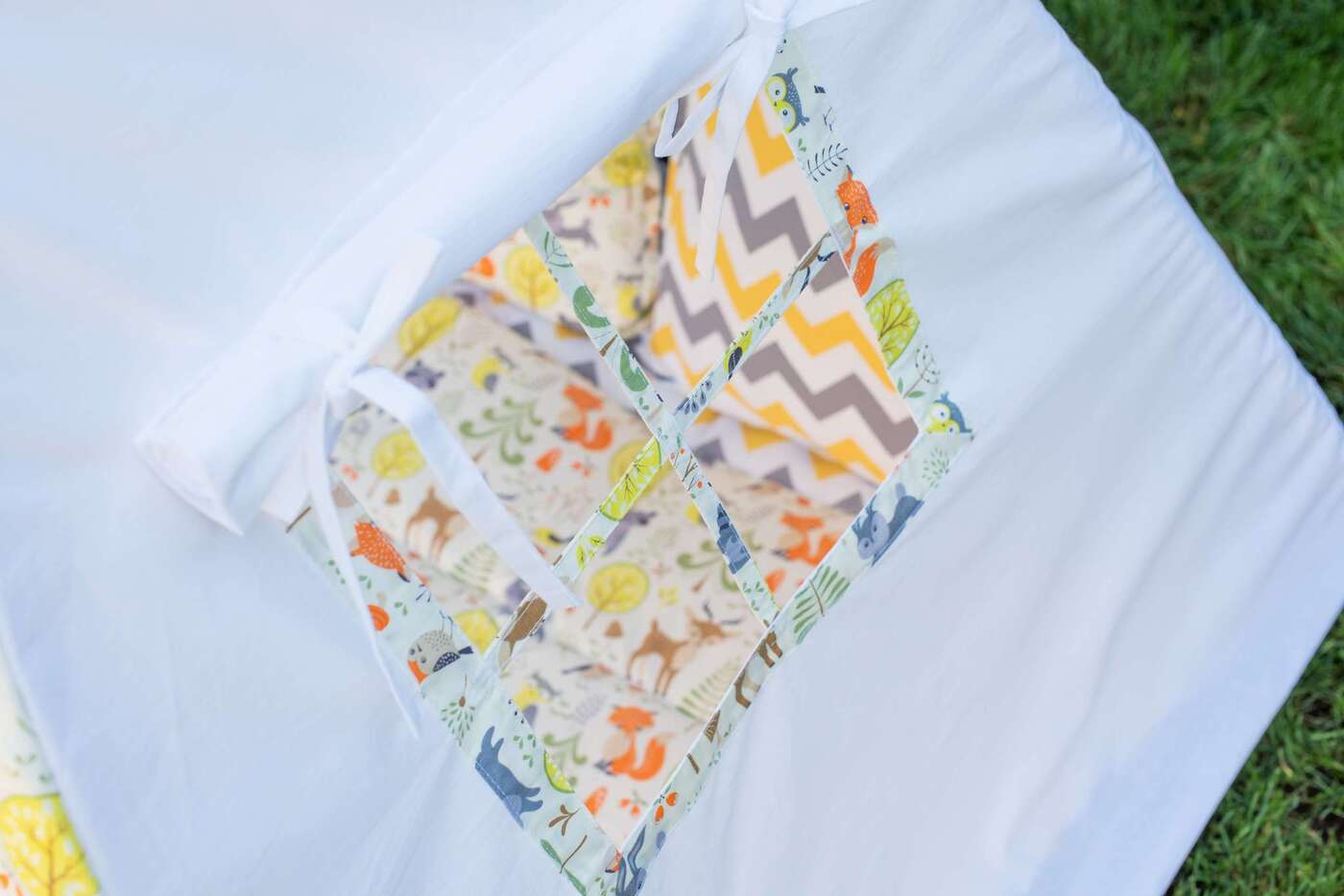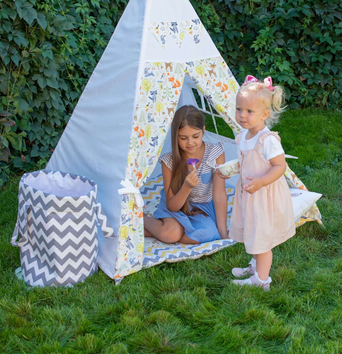 Детский вигвам льняной Vigvam Shop с разборной конструкцией, с матрасиком, флажками, 2 подушками и системой антискладывания 130*130 см