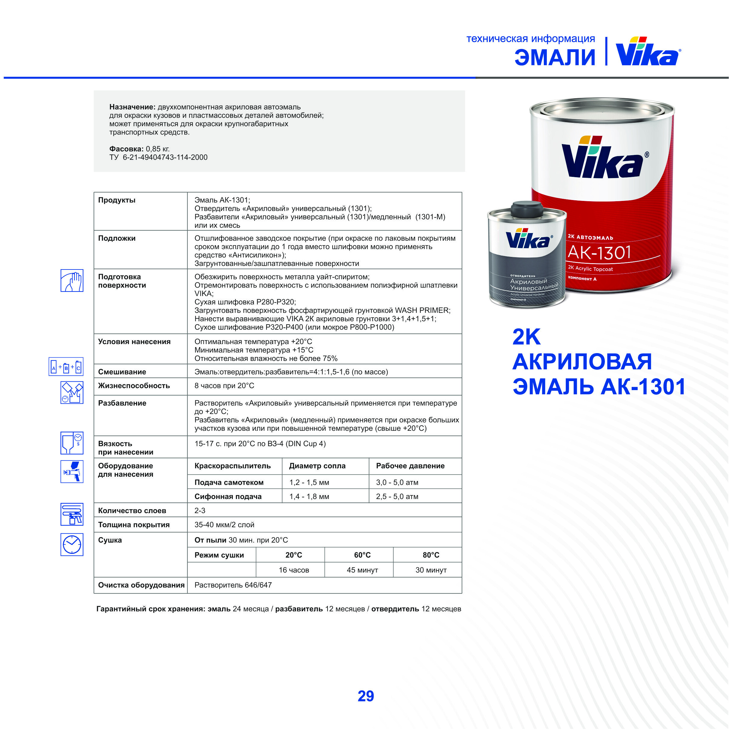 Такси VIKA АК-1301 2К Автоэмаль акриловая, уп.0,85кг