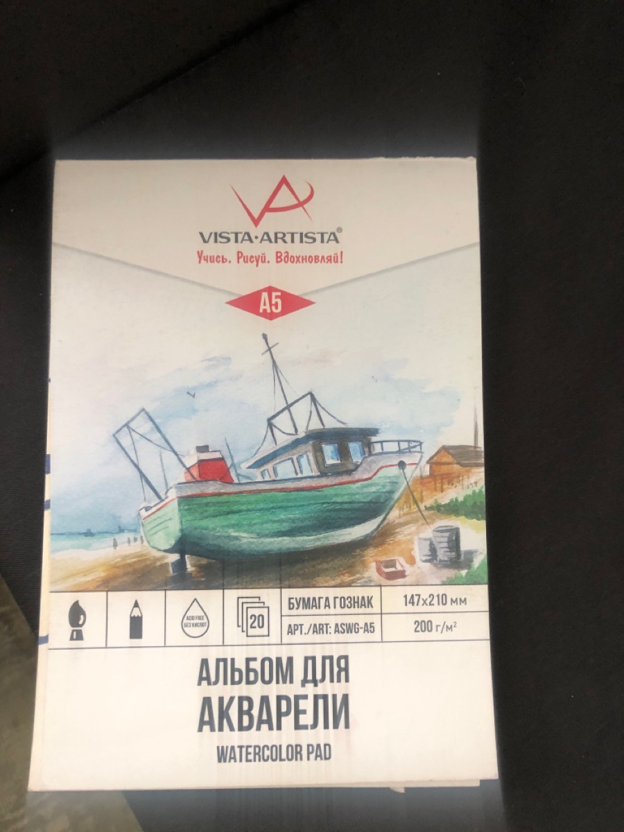 Альбом для акварели VISTA-ARTISTA "Гознак",ASWG-A5, 20 листов, А5, 200 г/м2, склейка