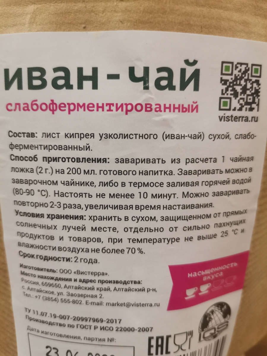 Иван-Чай сильноферментированный (Алтайский, листовой) Вистерра, пакет с замком зип-лок 50 г