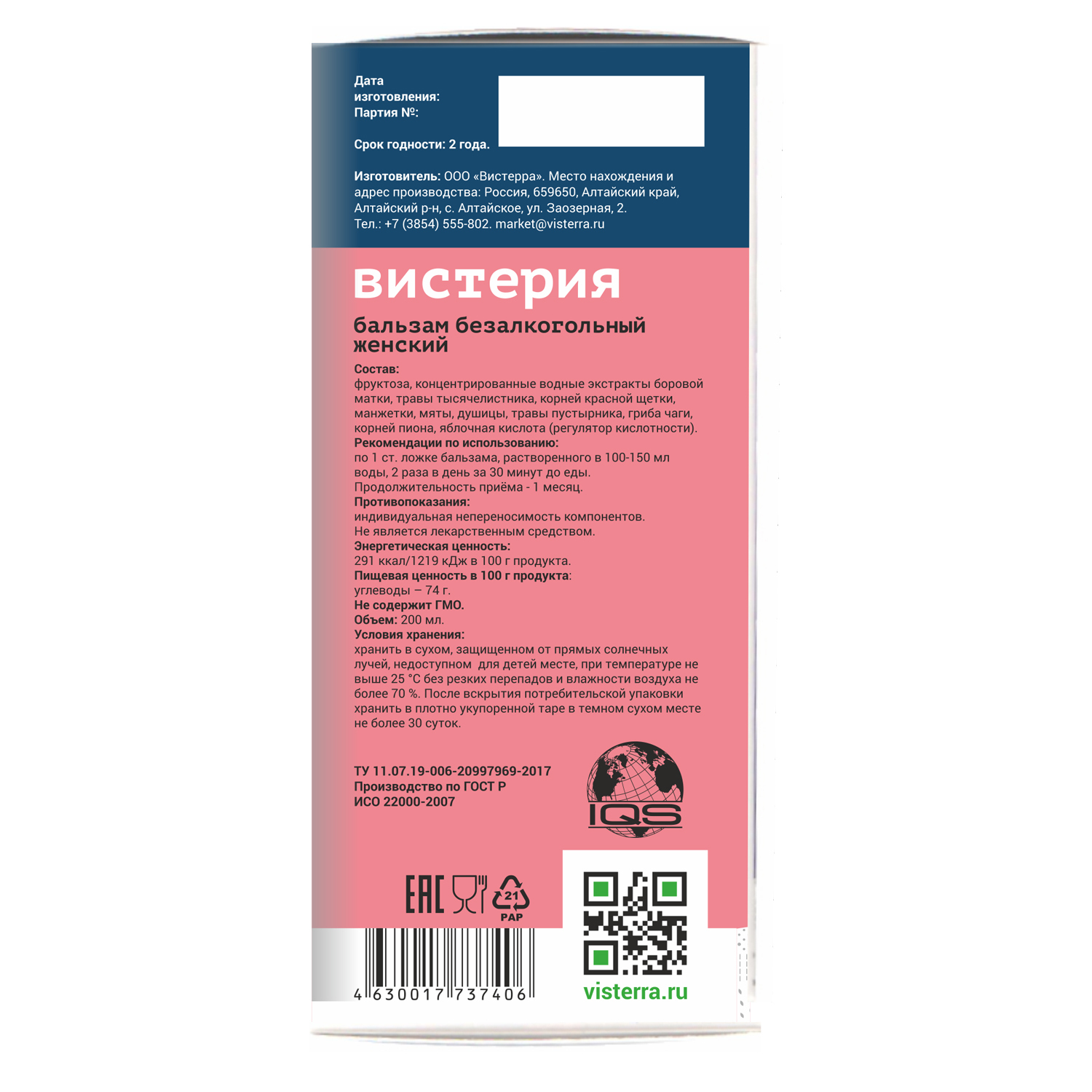 Бальзам безалкогольный "Таежное здоровье", "Вистерия", Вистерра, 200 мл.