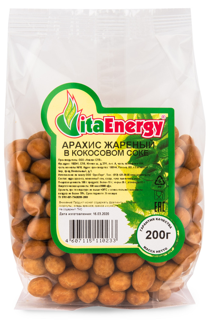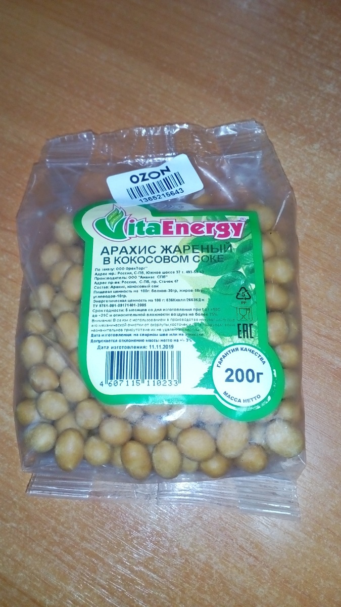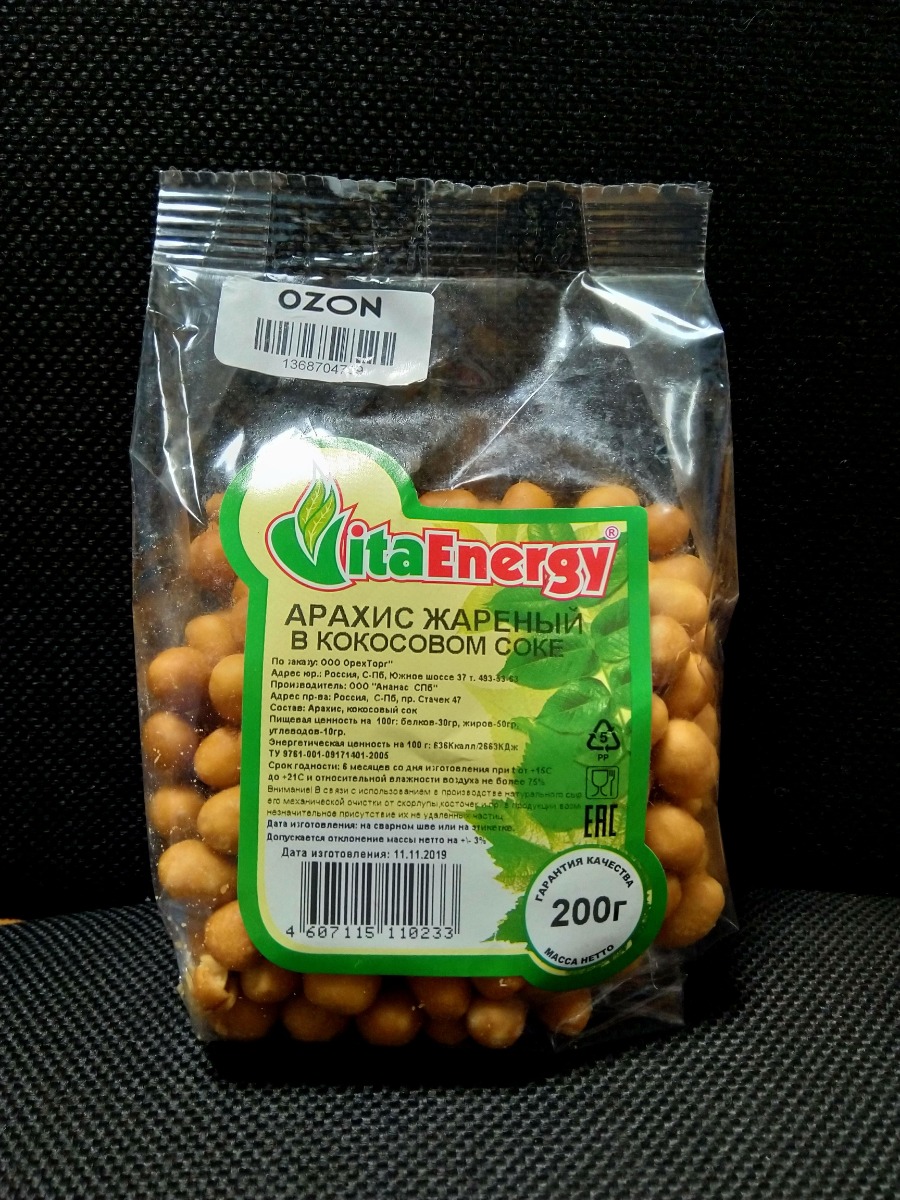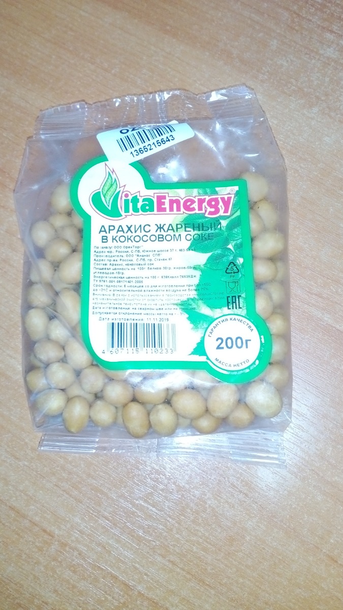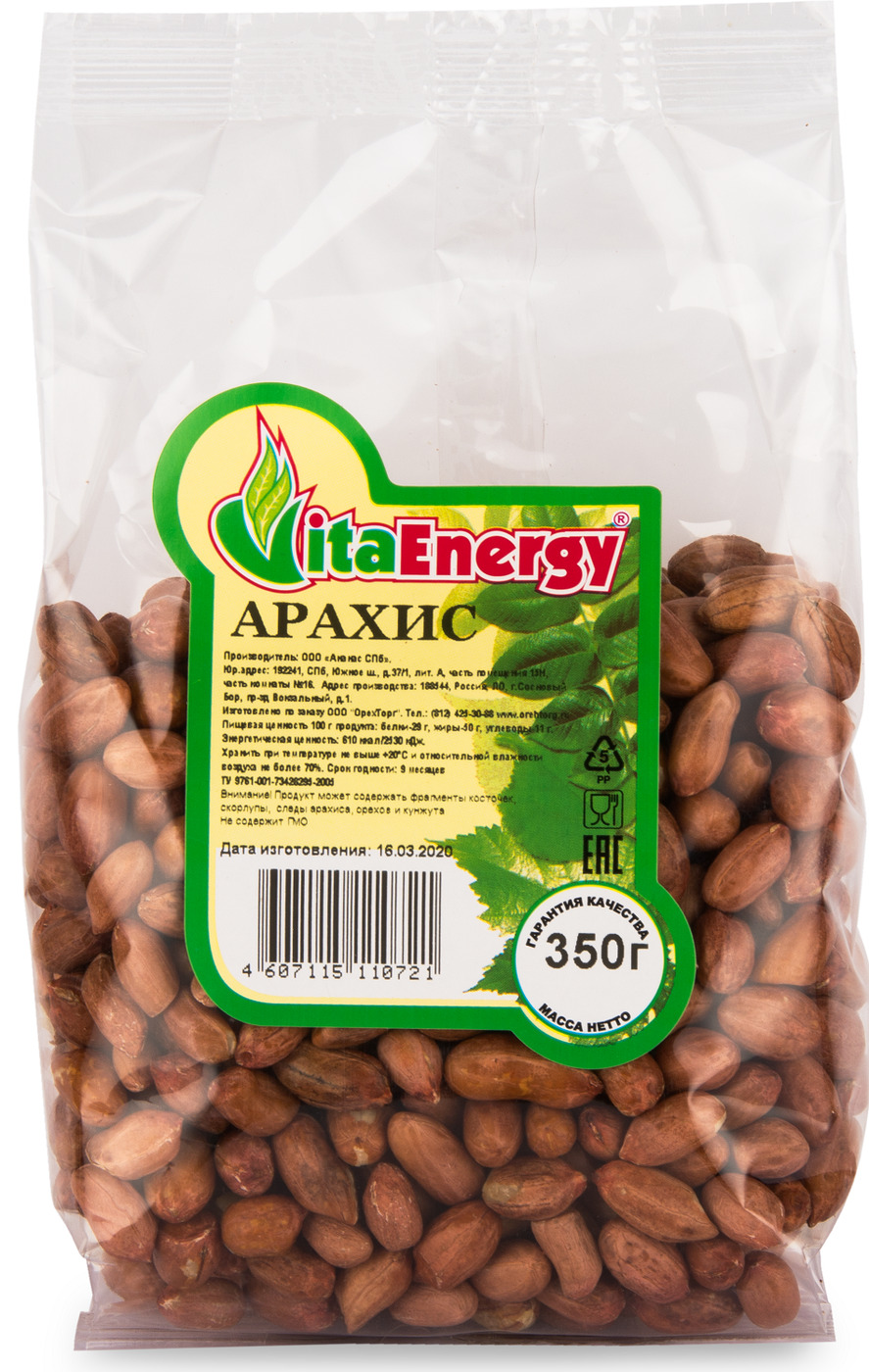 Арахис сырой очищенный (не бланшированный, не жаренный) Vita Energy 350 гр