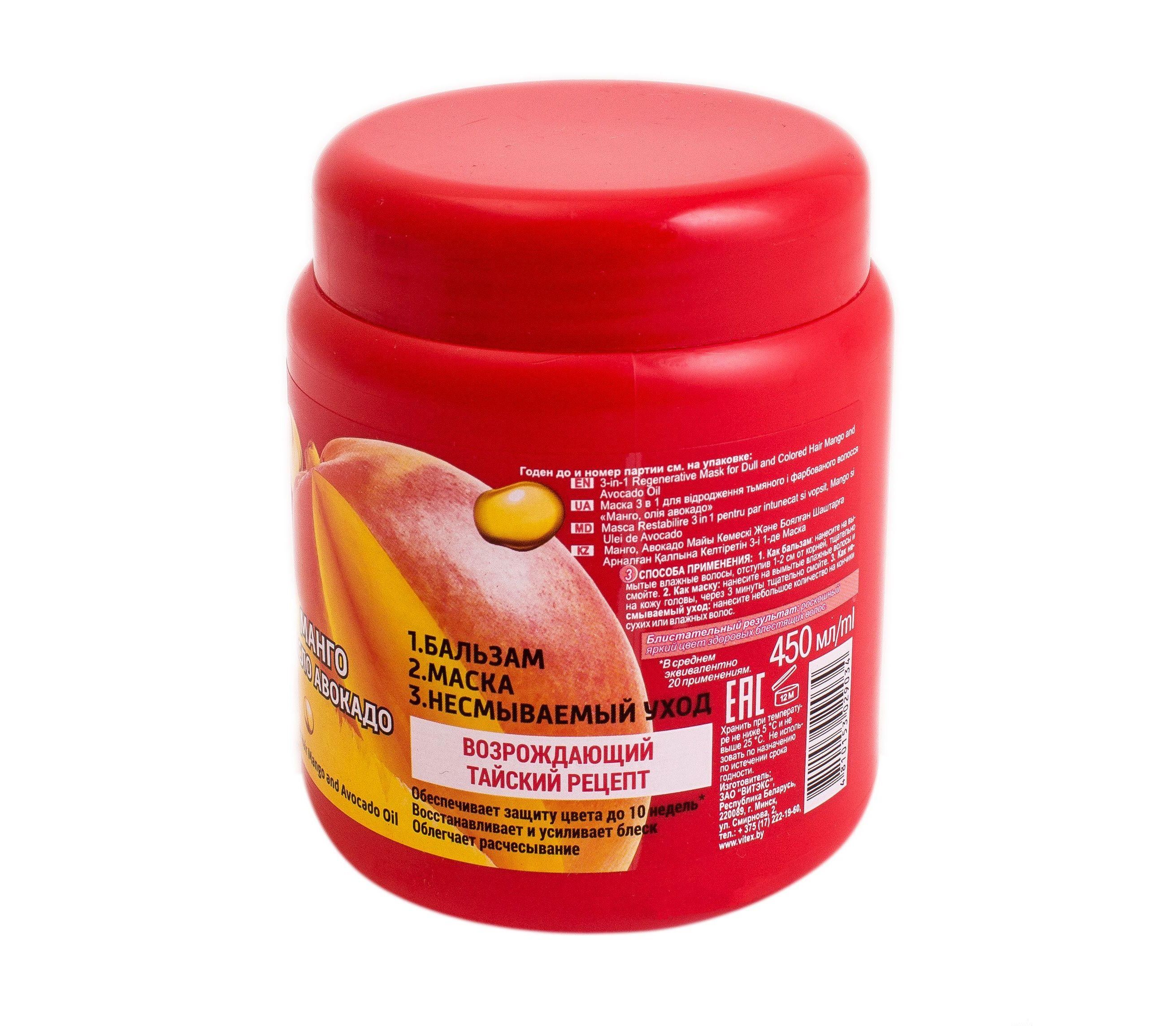 Маска для волос возрождающая 3 в 1 Витэкс Fruit Therapy Манго и масло авокадо, 450 мл