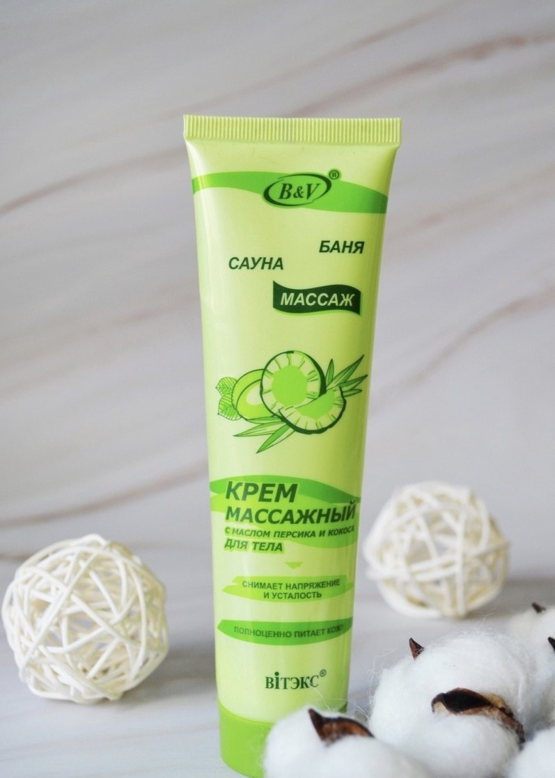 Витэкс Крем для тела массажный БАНЯ САУНА МАССАЖ с маслом персика и кокоса 100мл