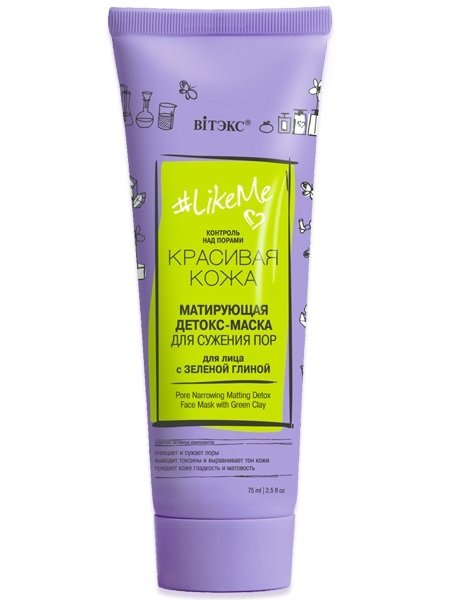 Витэкс Матирующая ДЕТОКС-МАСКА для сужения пор для лица с зеленой глиной #LikeMe КОНТРОЛЬ НАД ПОРАМИ