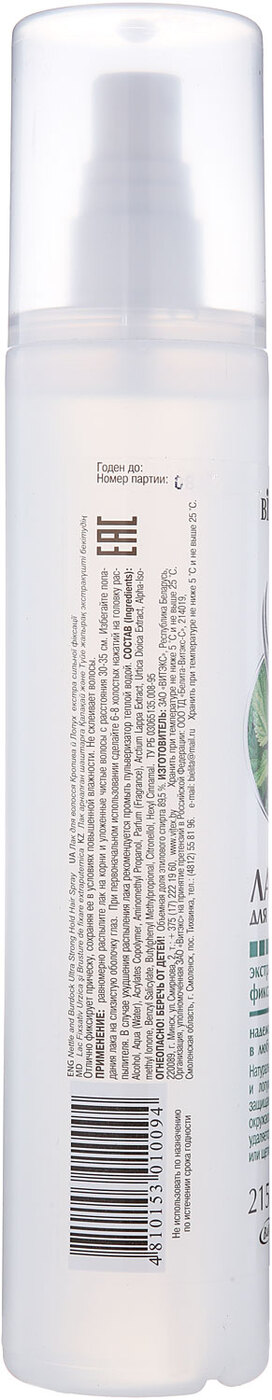 Лак для волос Витэкс "Крапива и лопух", экстрасильной фиксации, 215 мл