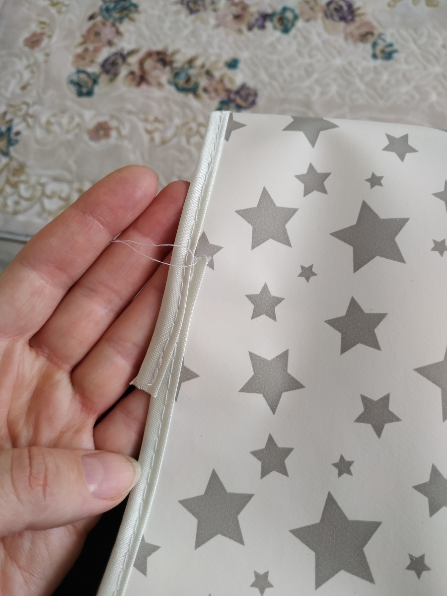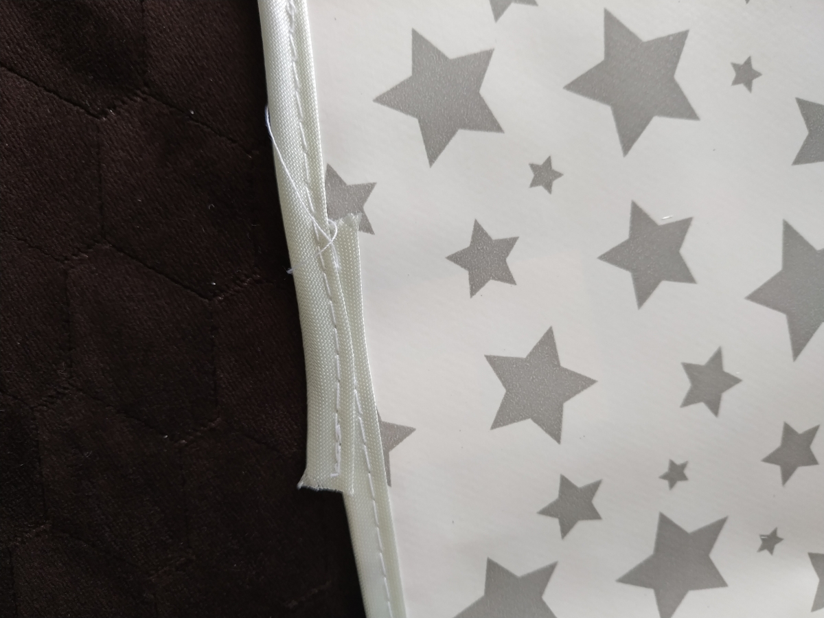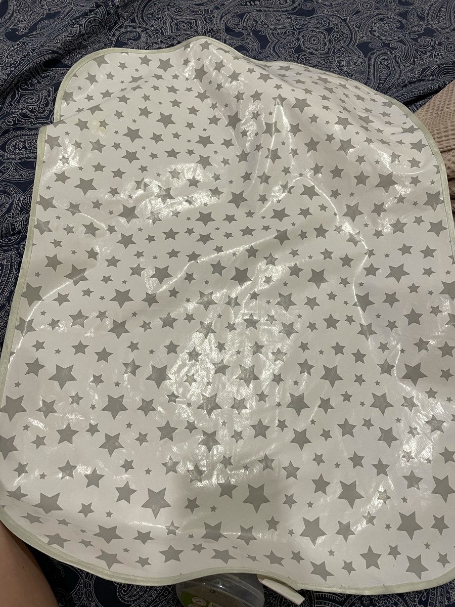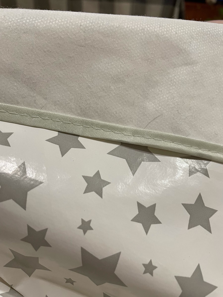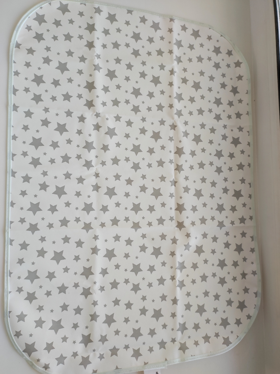 Клеенка подкладная в коляску, окантованная 480х680 мм, звёзды серые на белом фоне