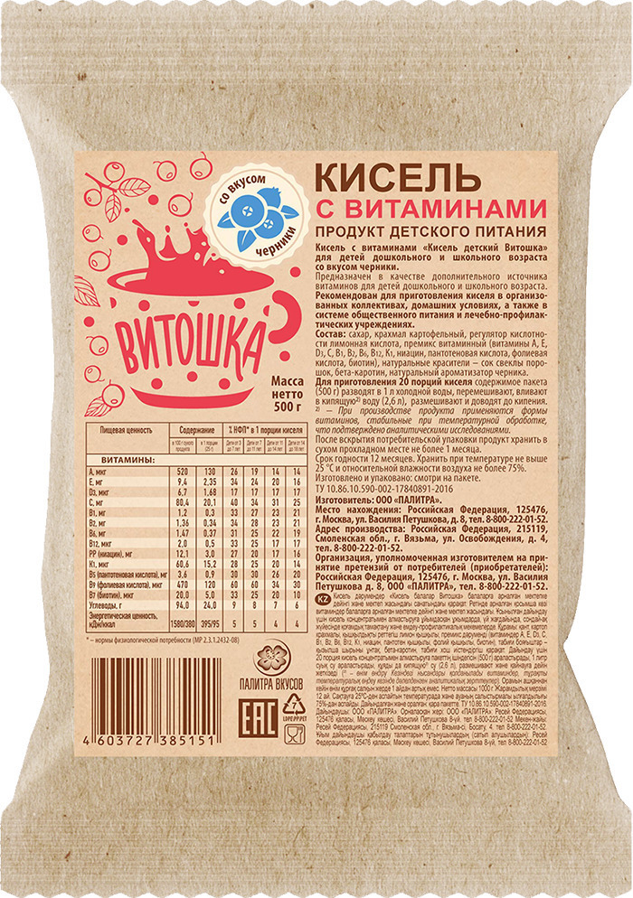 Кисель ВИТОШКА вкус ЧЕРНИКИ 0,5кг