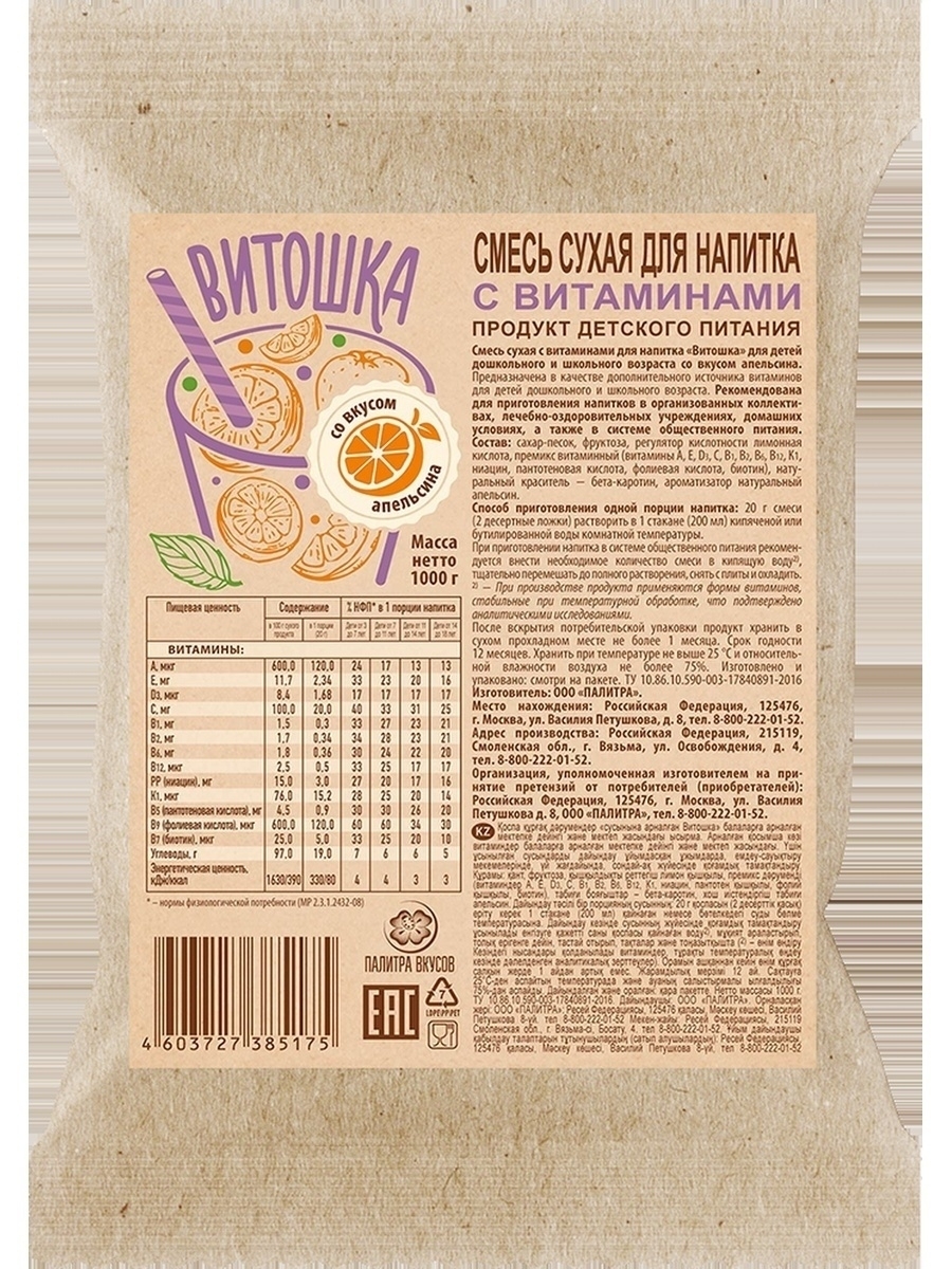 Напиток витаминизированный ВИТОШКА 1 кг (апельсин).