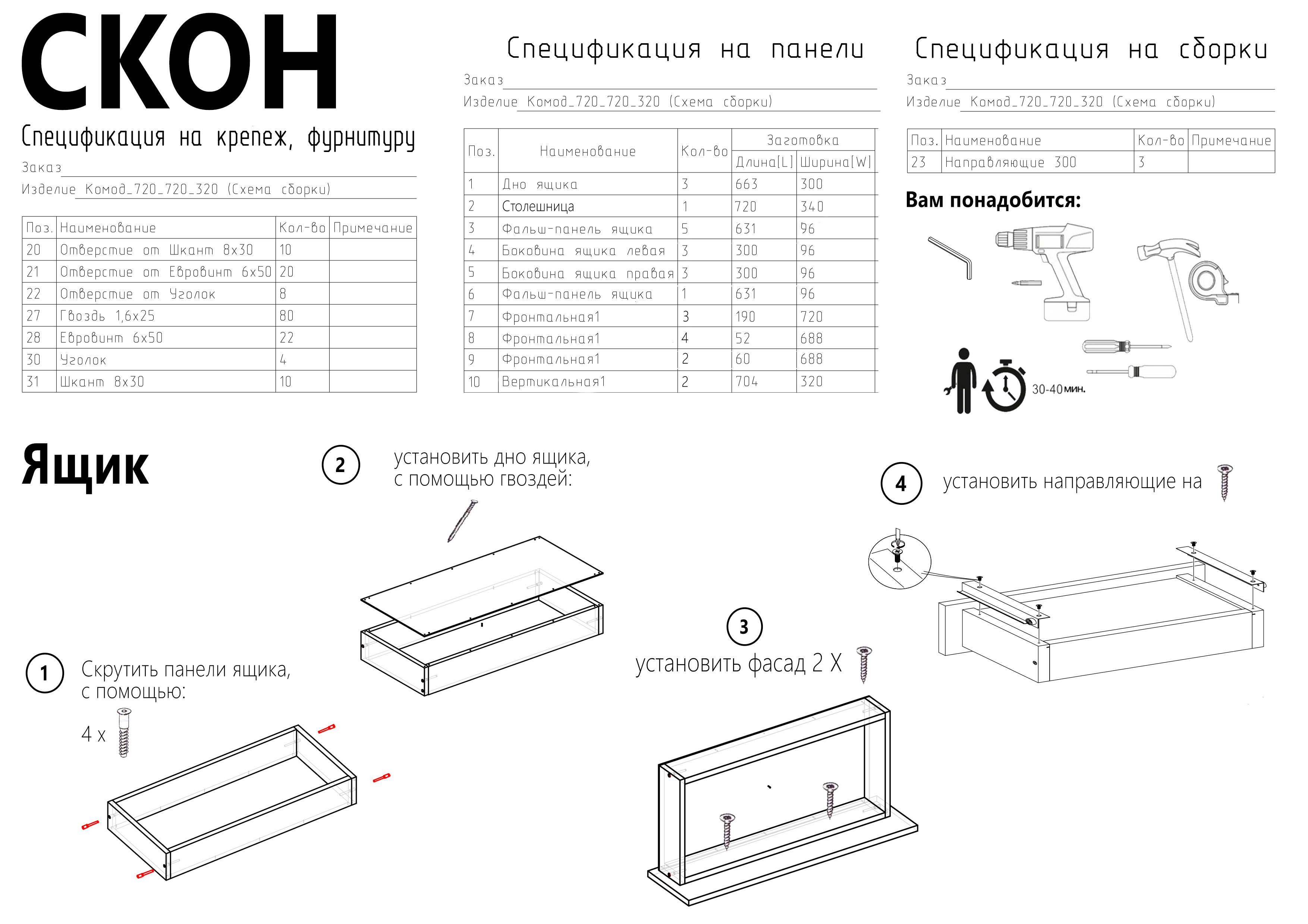 Комод Скандинавия, 1 ящ., 72х34x75 см, Vivo Trade
