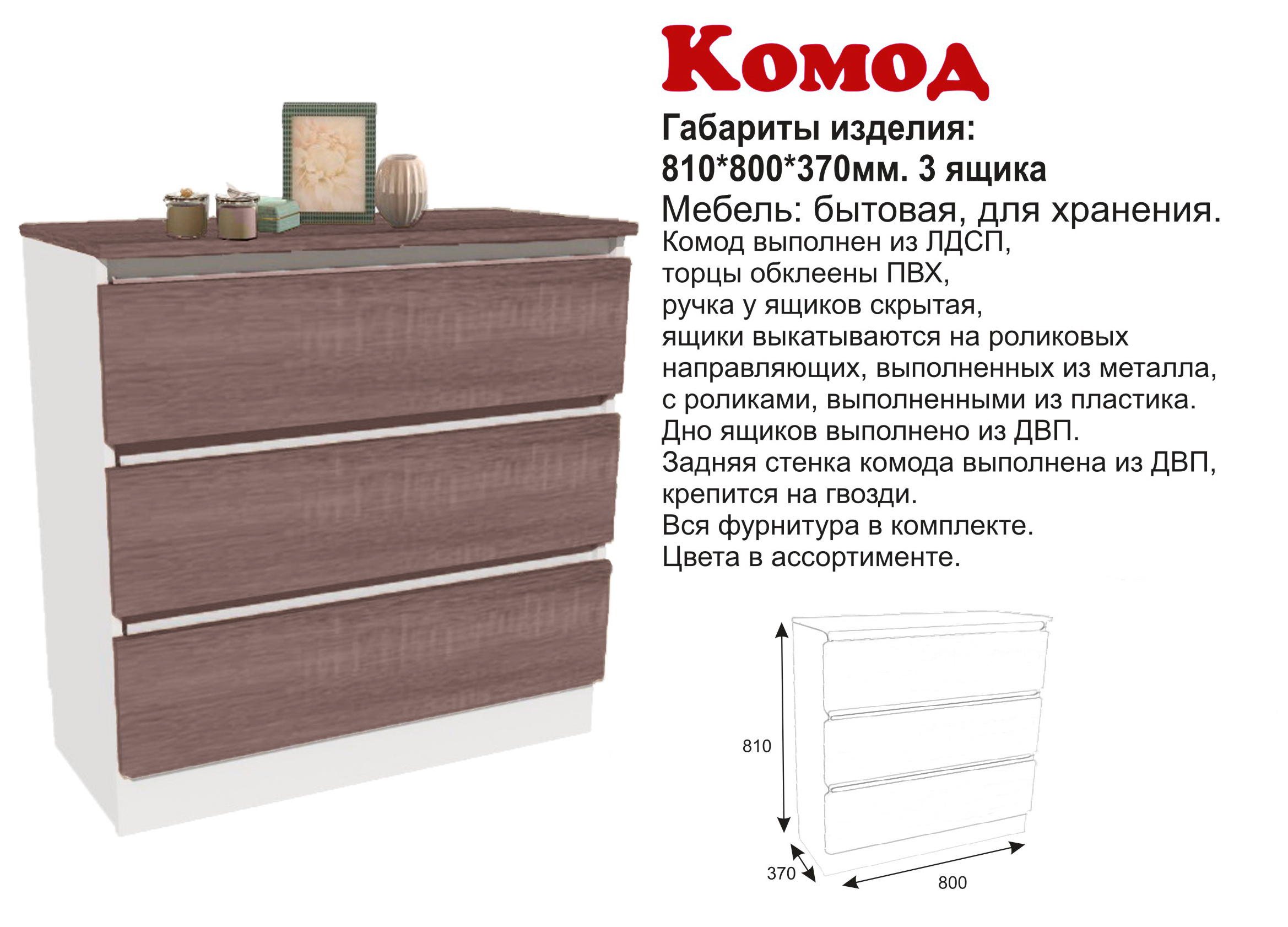 Комод Шима, 3 ящ., 80х37x81 см, Vivo Trade