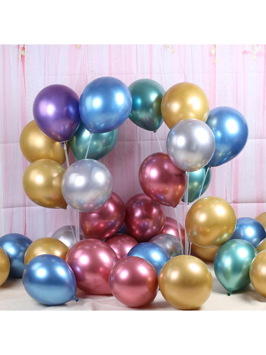 Воздушные шарики "РАЗНОЦВЕТНЫЕ ХРОМ 6 цветов 50 шт." диаметр 25 см. зеркальные, латексные.
