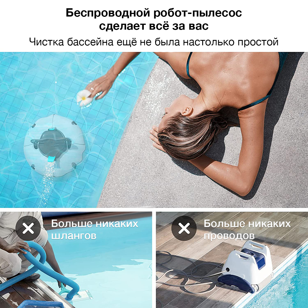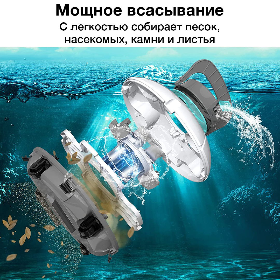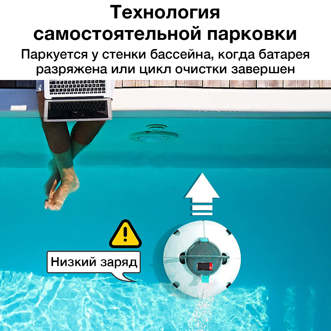 Робот-пылесос для бассейна аккумуляторный. Очищает дно бассейнов площадью до 50 кв.м