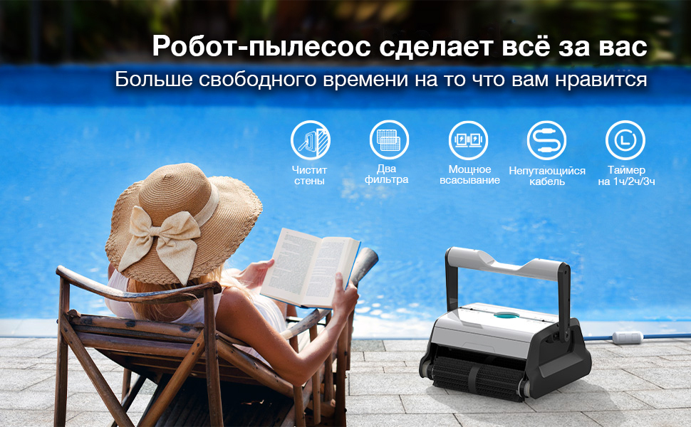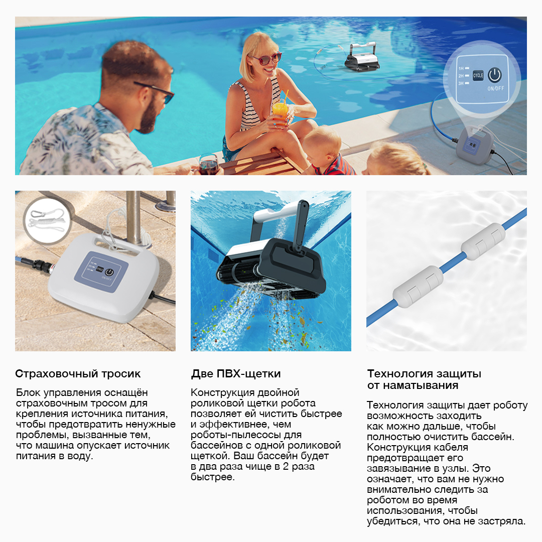 Проводной робот-пылесос для дна и стенок плёночных и каркасных бассейнов