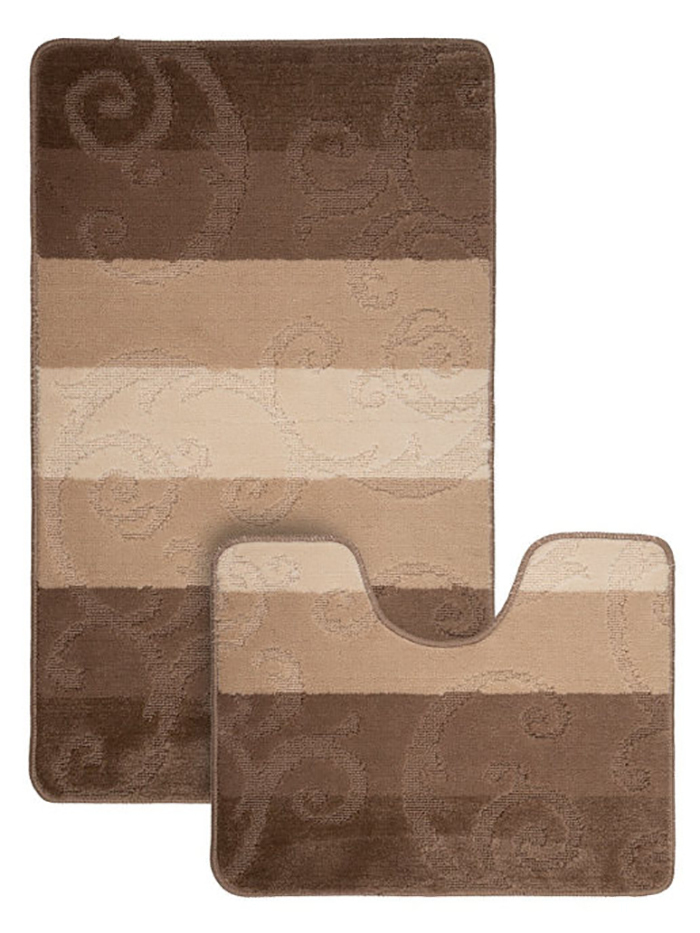Набор противоскользящих ковриков для ванной и туалета, Vonaldi, 60*100+60*50 см, бежево-коричневый