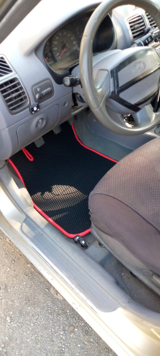 Комплект EVA ковриков для Hyundai Accent 2 (ТАГАЗ) 1999-2012/Хендай Акцент 2 1999-2012 серый с черной окантовкой