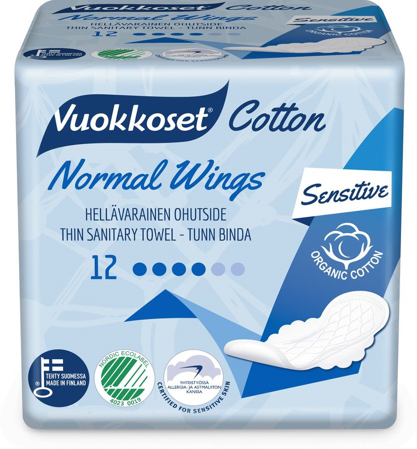 Vuokkoset Прокладки гигиенические, органические, натуральные с крылышками, 12 шт