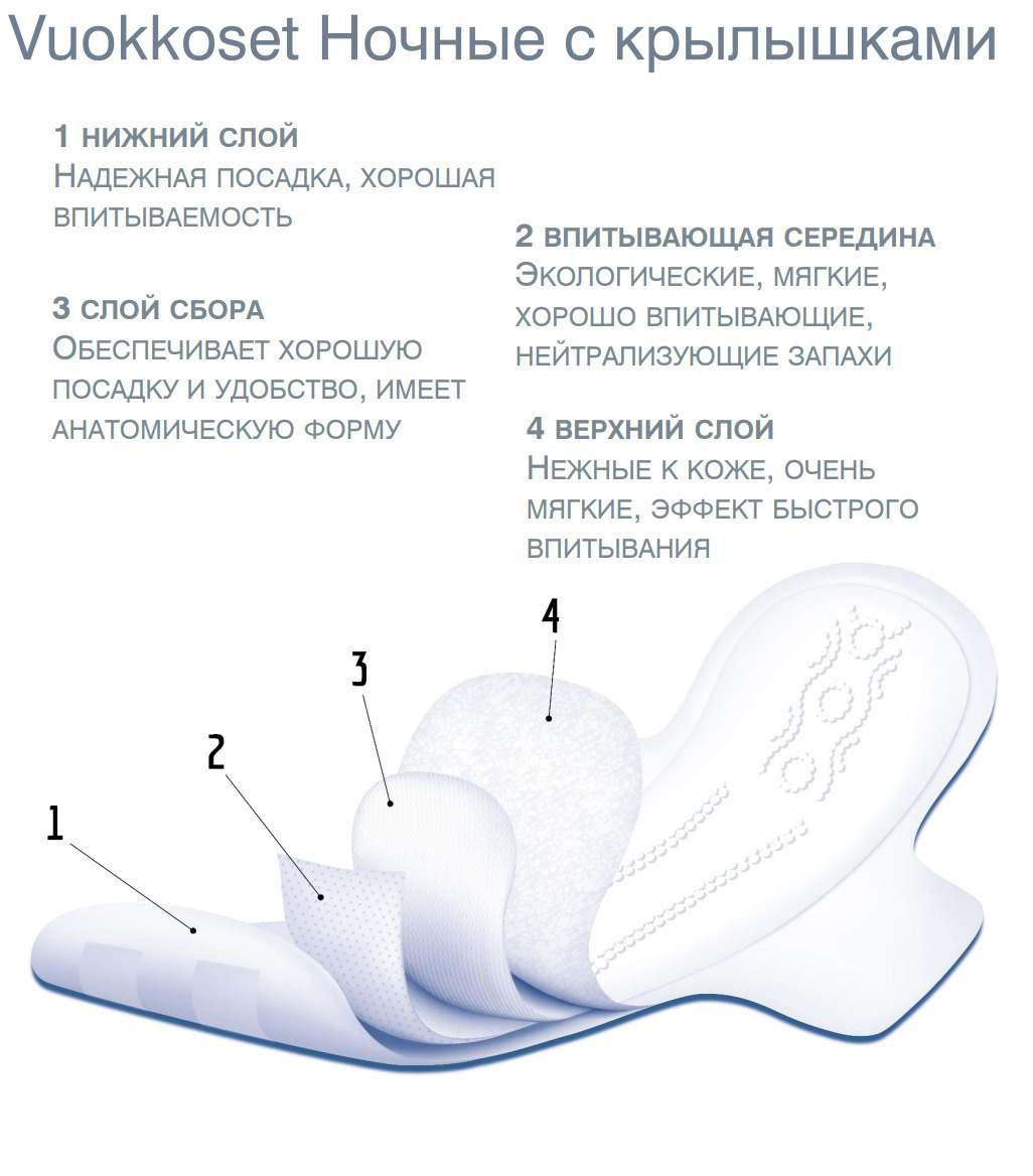Прокладки гигиенические VUOKKOSET 10 Long Wings