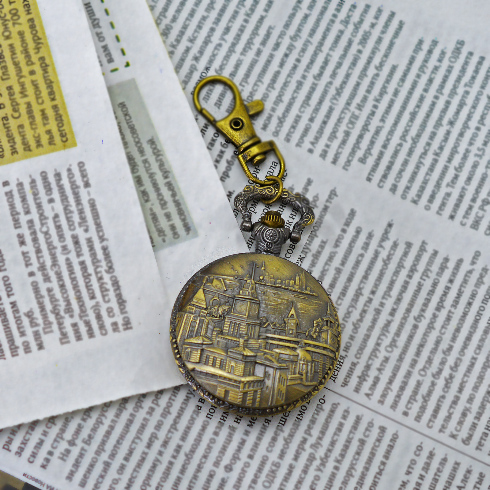 Карманные часы - брелок винтажные "Восход" металл, стекло, кварцевый часовой механизм.