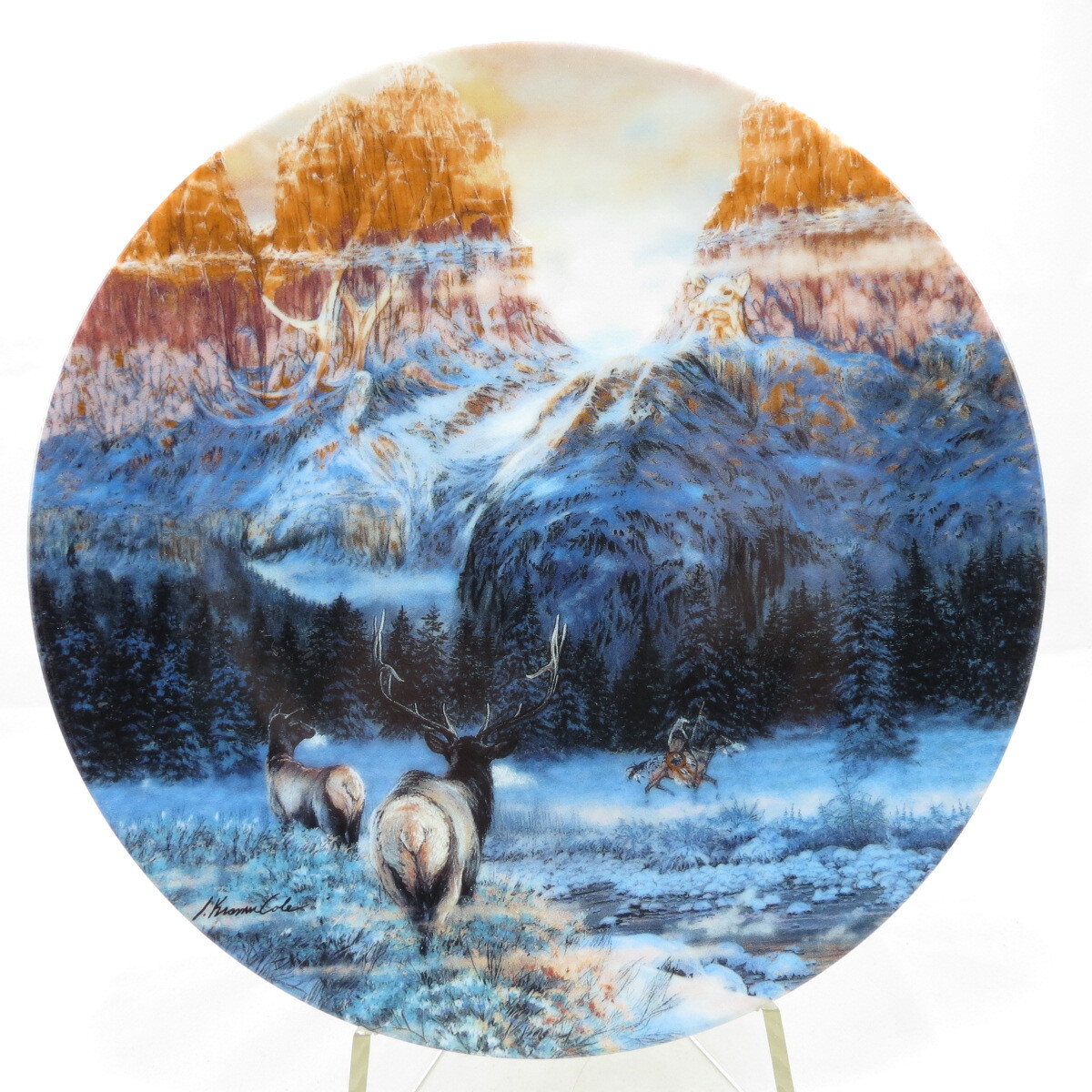 Декоративная коллекционная тарелка "Лики природы: Зимуя с Вапити. Олени". Фарфор, деколь. США, W.S. George, Джули Кремер Коул, 1992