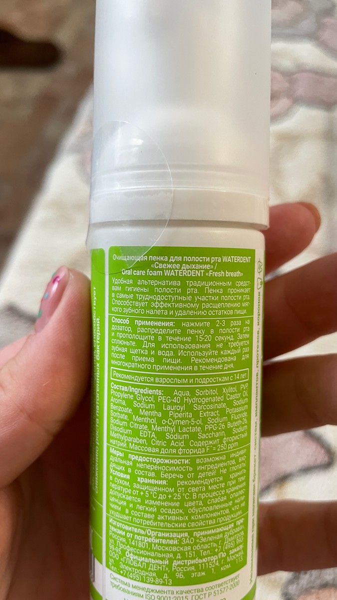 Спрей увлажняющий / WATERDENT / для полости рта 15 мл с гиалуроновой кислотой