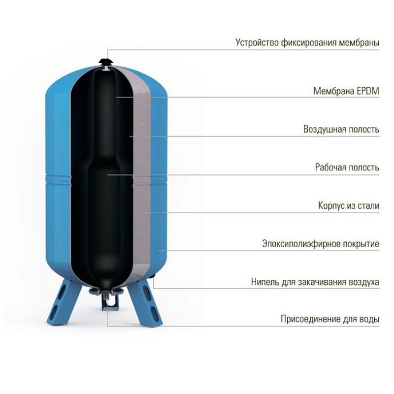 Мембранный бак для водоснабжения вертикальный, 8 л, WAV8 10 бар 110 C, Wester WAV8 lnd