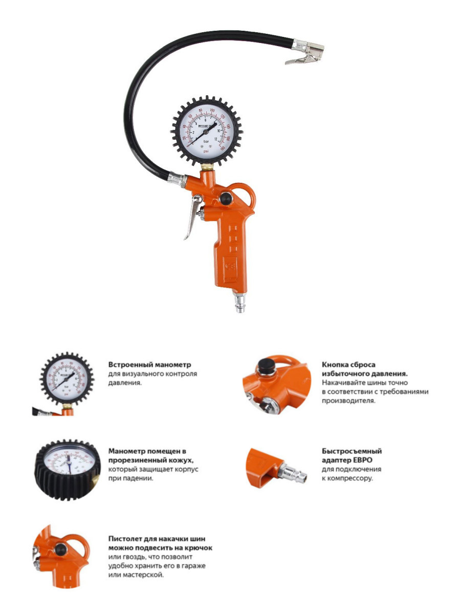 Пистолет для накачки шин WESTER RF-10, с манометром