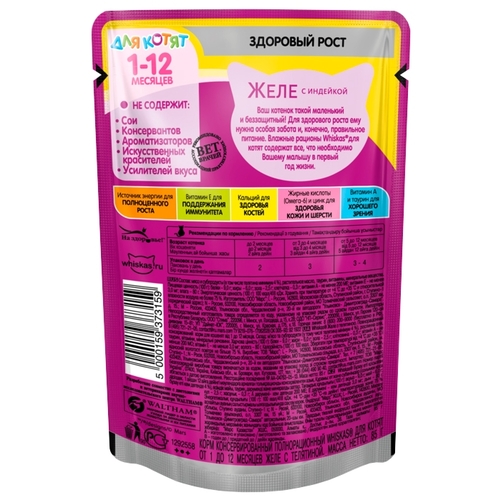 Корм для котят Whiskas с индейкой 85 г (кусочки в желе)