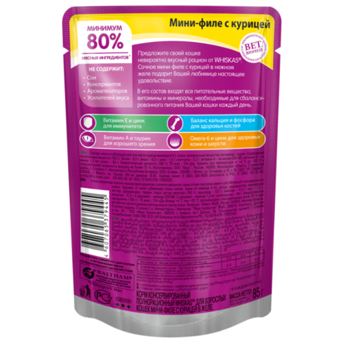 Корм для кошек Whiskas с курицей 85 г (мини-филе)