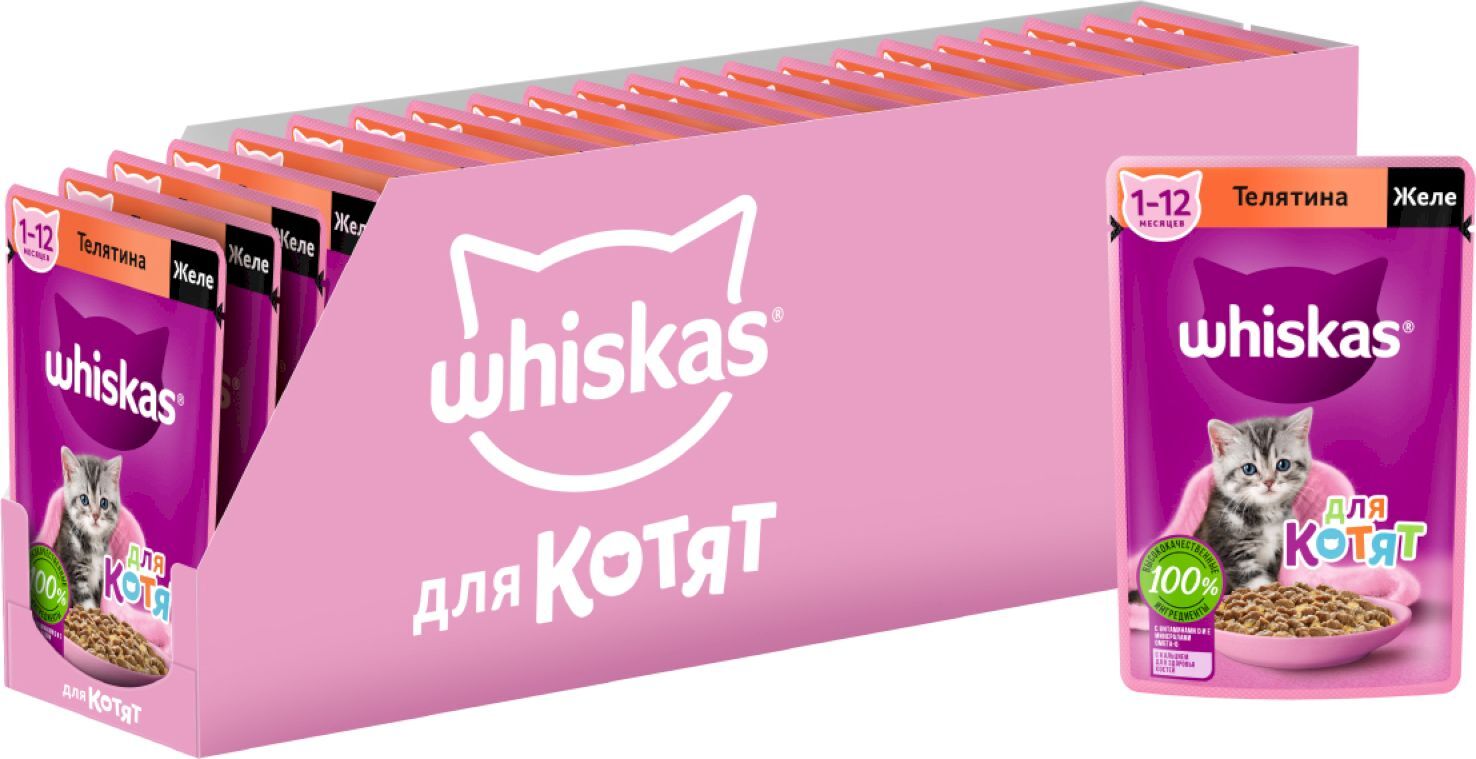 Влажный корм для котят Whiskas, кусочки в желе с телятиной, 75 г