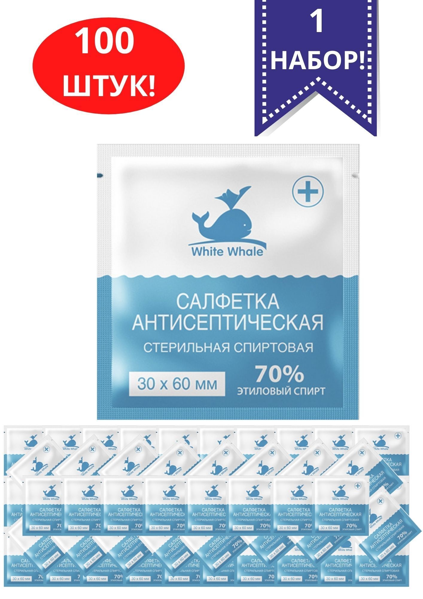 Салфетки стерильные White Whale, 110*125мм, 80шт., антисептические, спиртовые