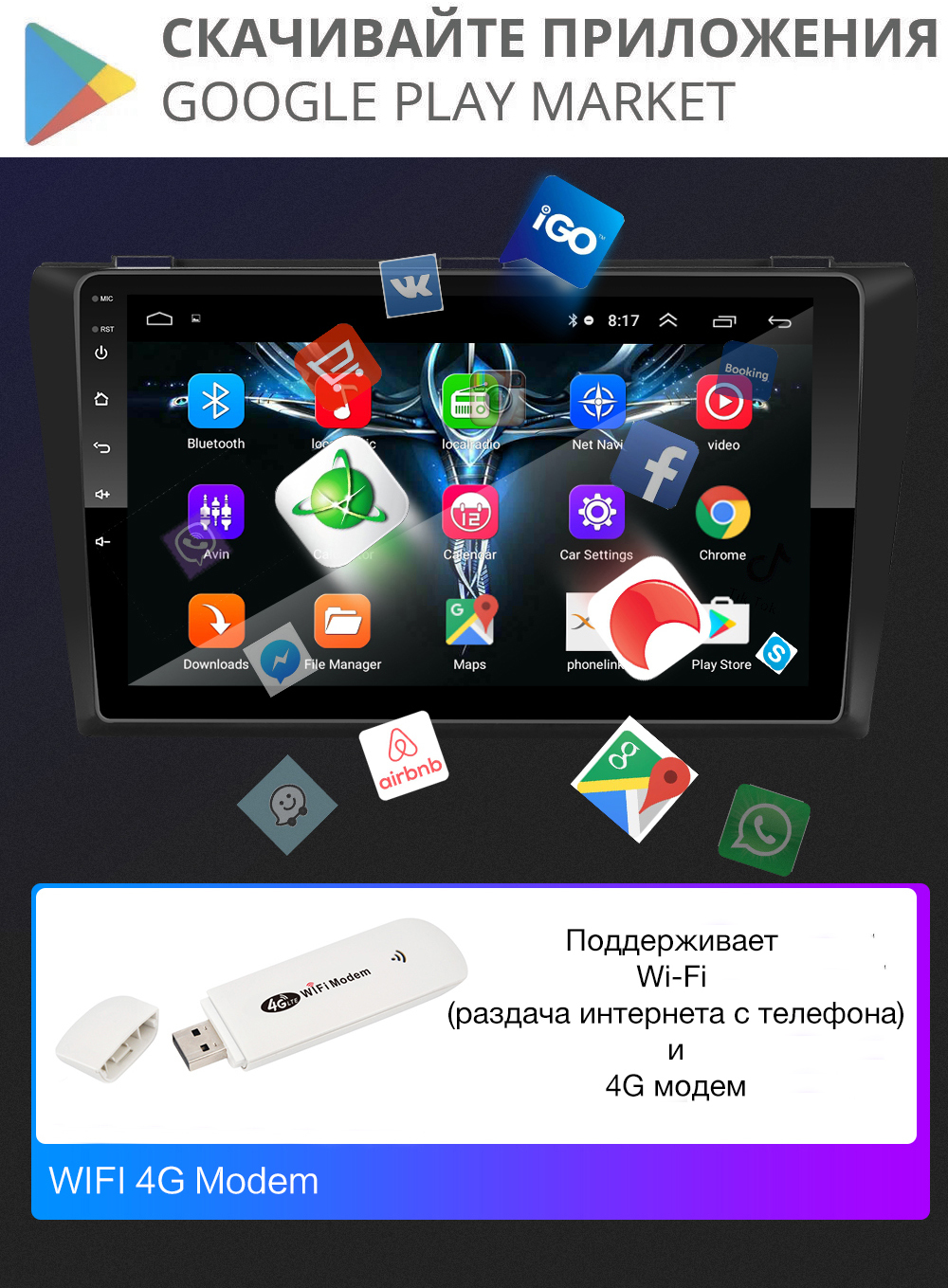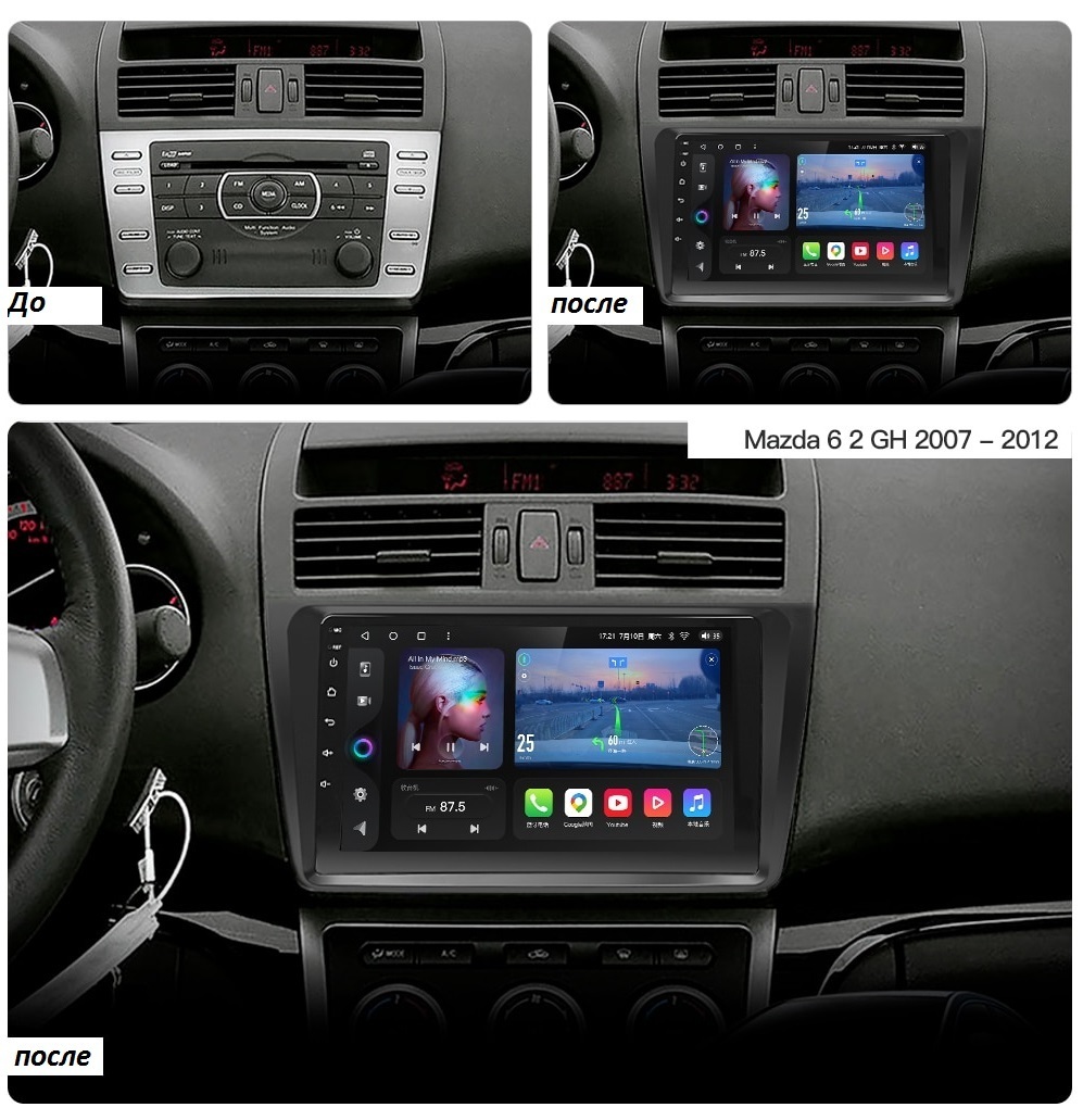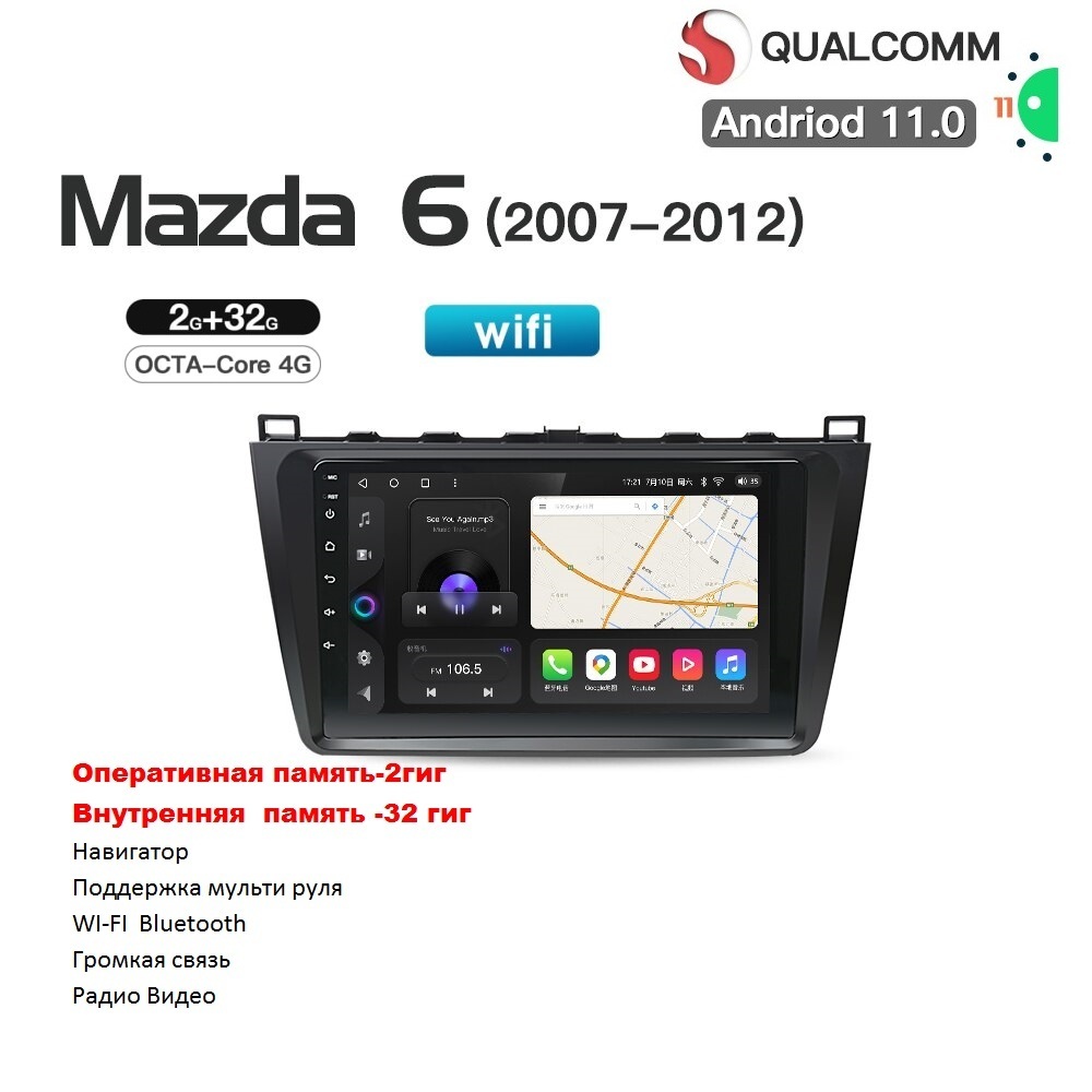 Автомагнитола Mazda 6 2 2007-2012 Android 11 WI-FI Блютус Радио Видео Громкая связь USB