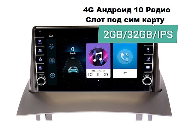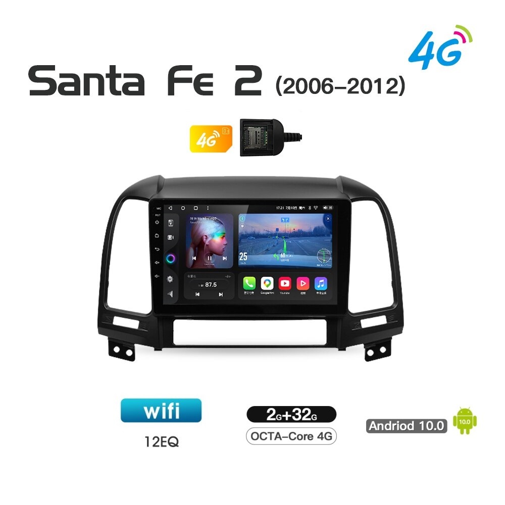 Автомагнитола Hyundai Santa Fe 2 2006-2012 Android 10 4G WI-FI Блютус Радио Видео Громкая связь USB