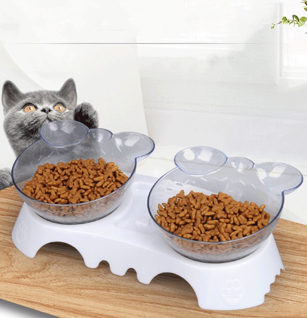 Миска для кошек и собак двойная нескользящая, на подставке с наклоном
