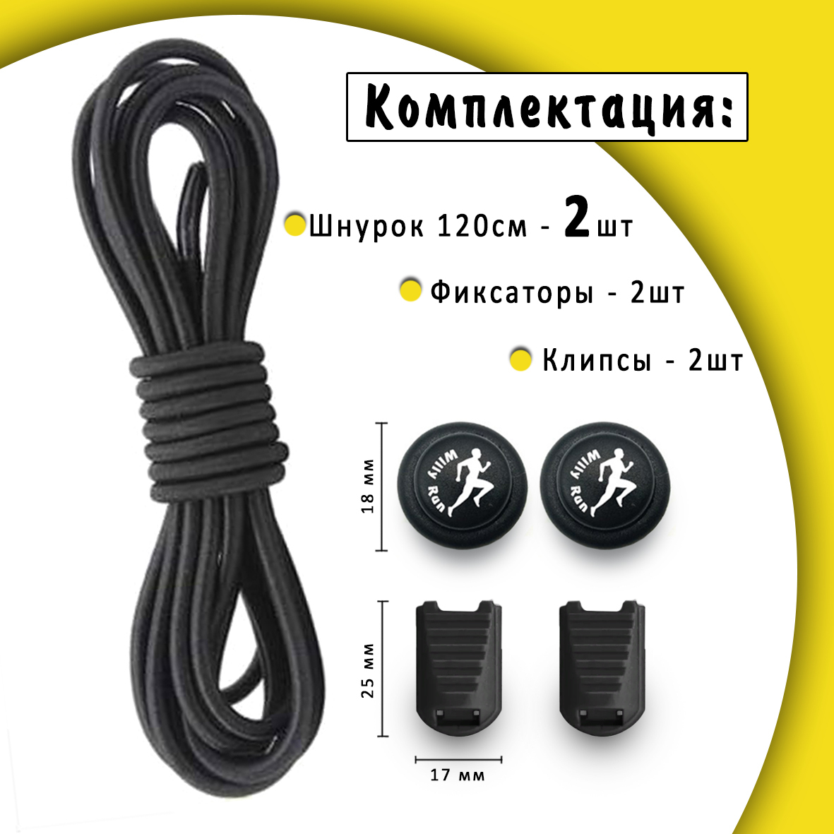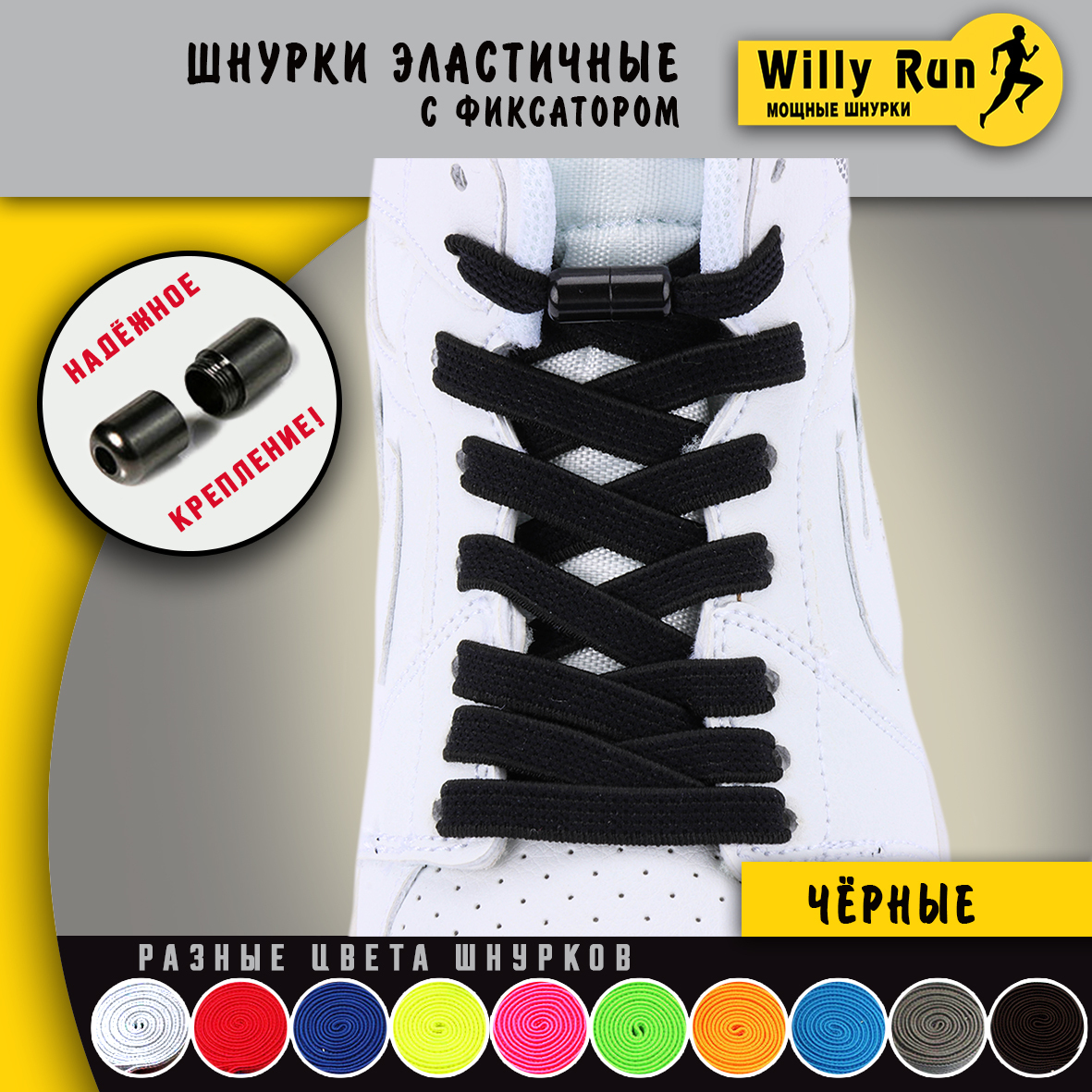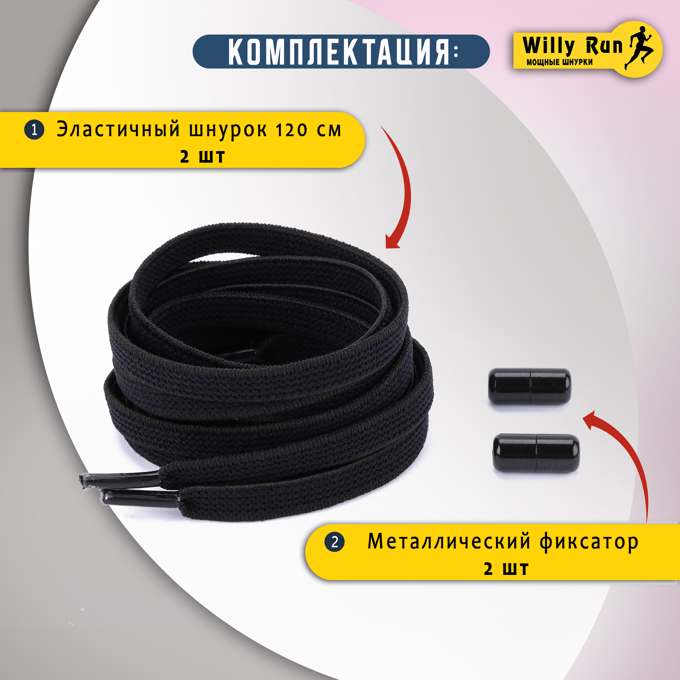 Шнурки Willy Run эластичные плоские с фиксатором без завязок быстрые ленивые для кроссовок ботинок черные