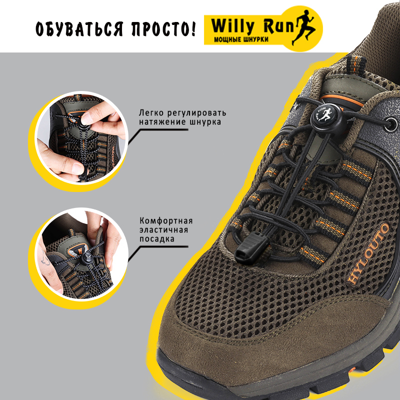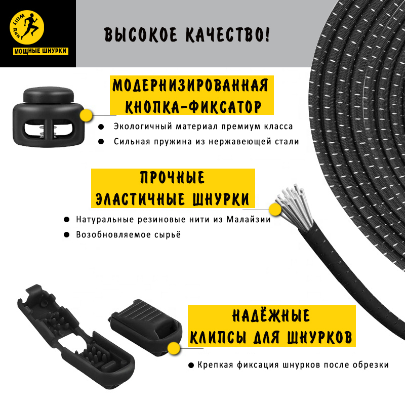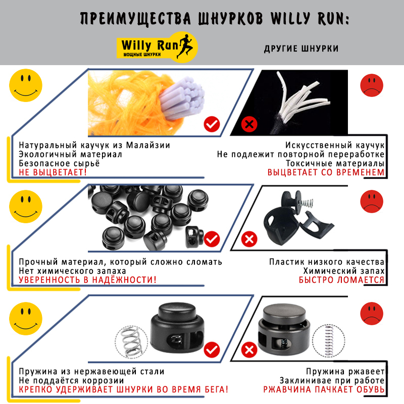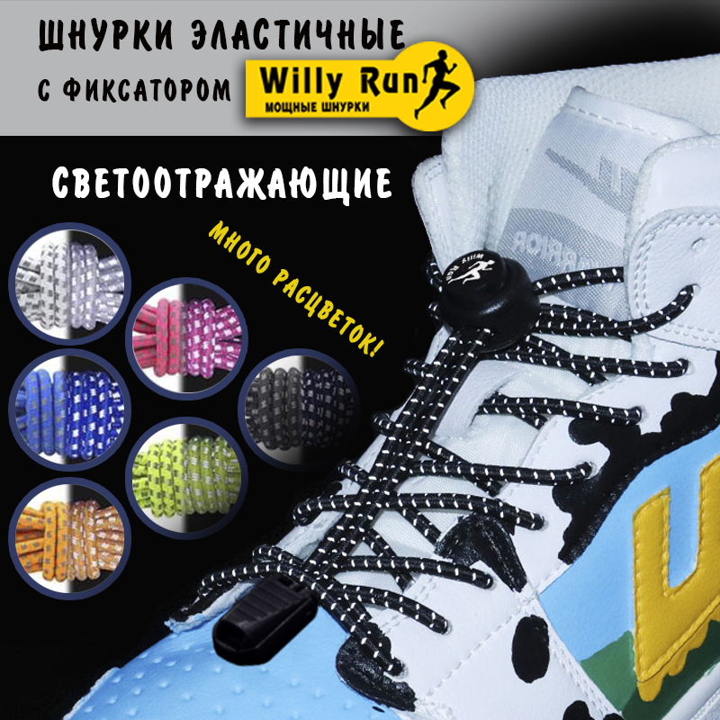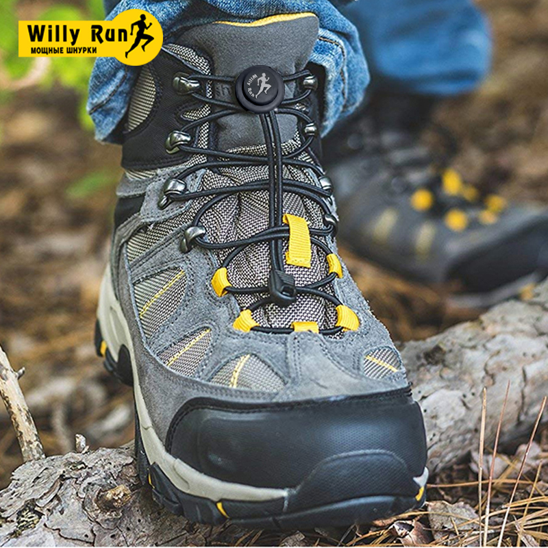 Шнурки Willy Run эластичные плоские с фиксатором без завязок быстрые ленивые для кроссовок ботинок черные