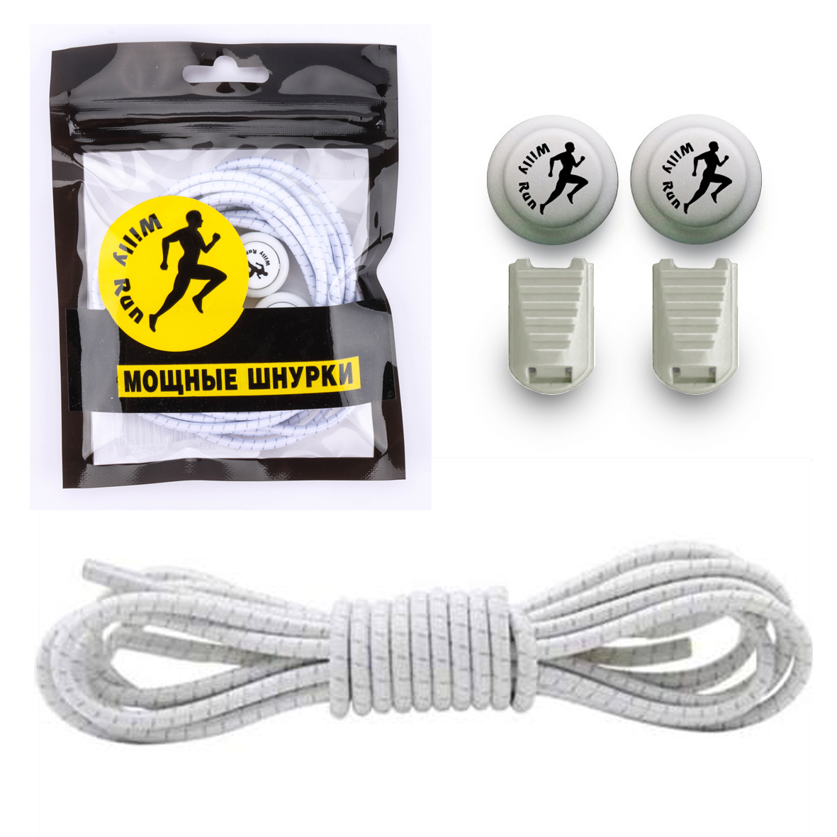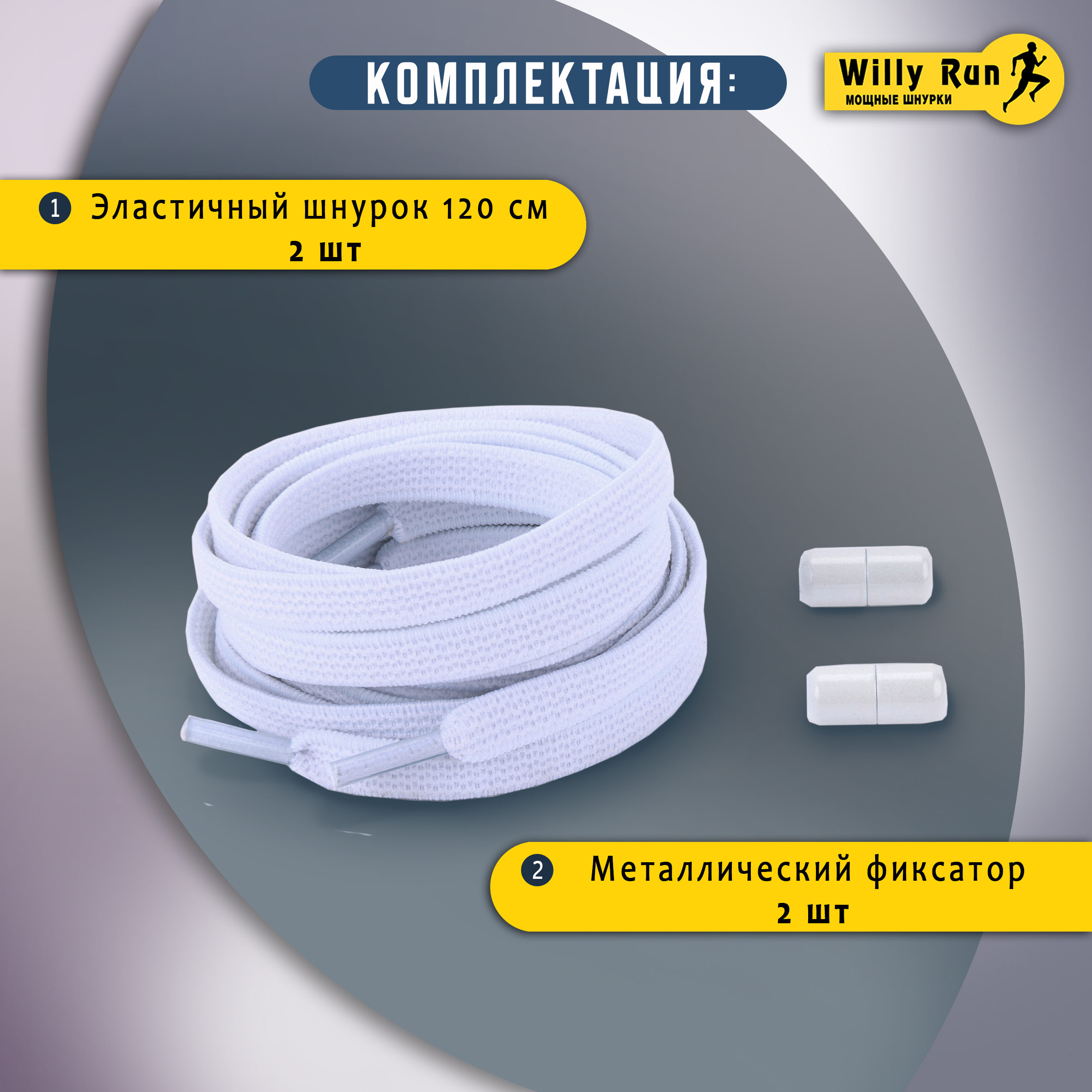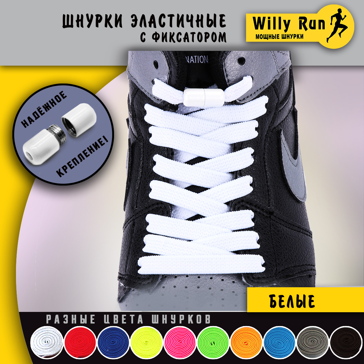 Шнурки Willy Run эластичные плоские с фиксатором без завязок быстрые ленивые для кроссовок ботинок белые