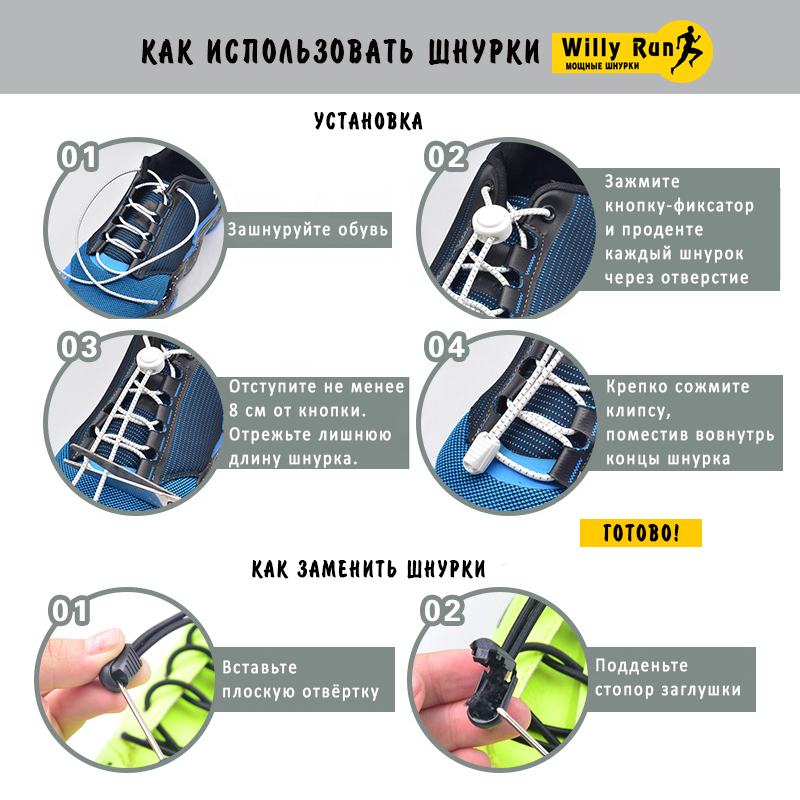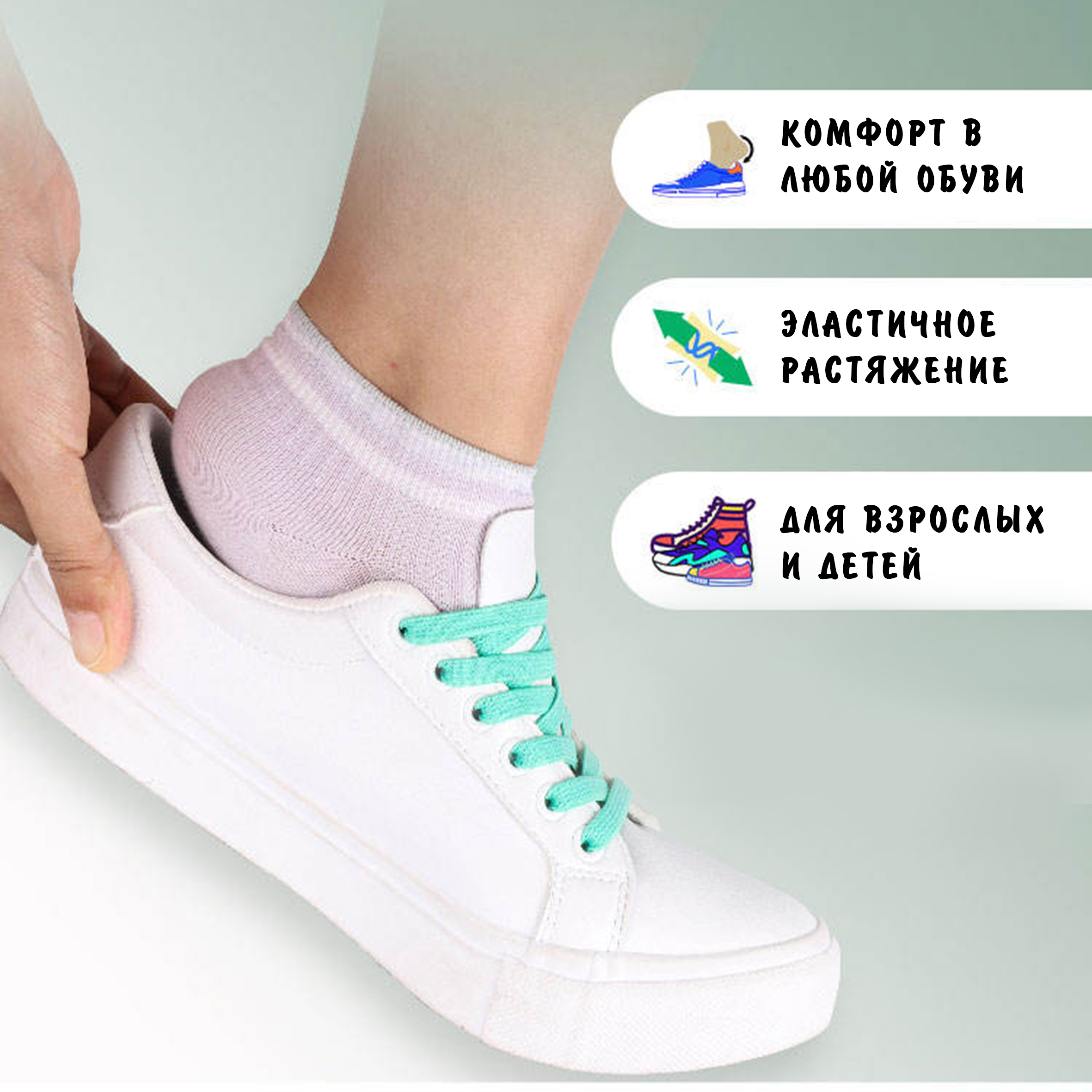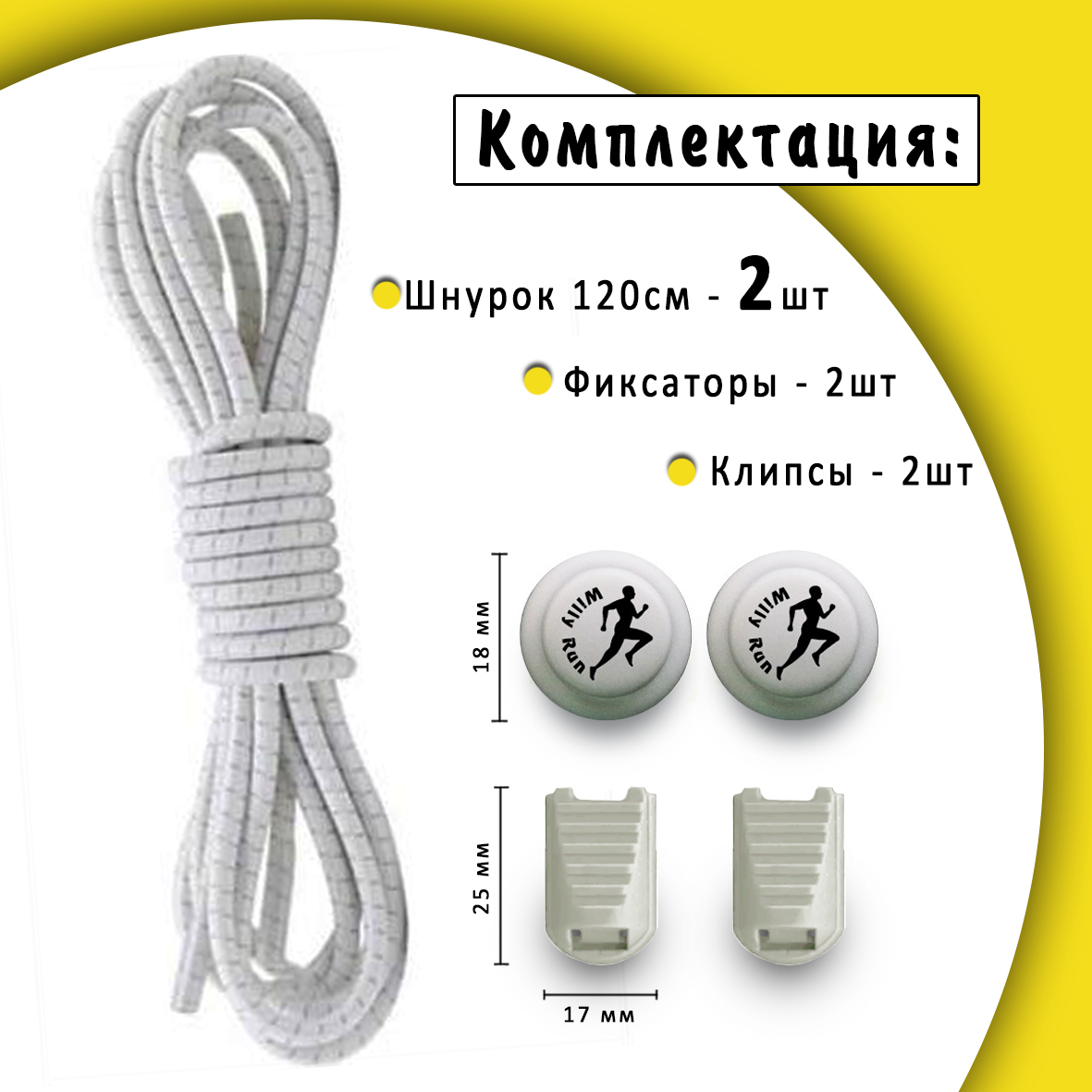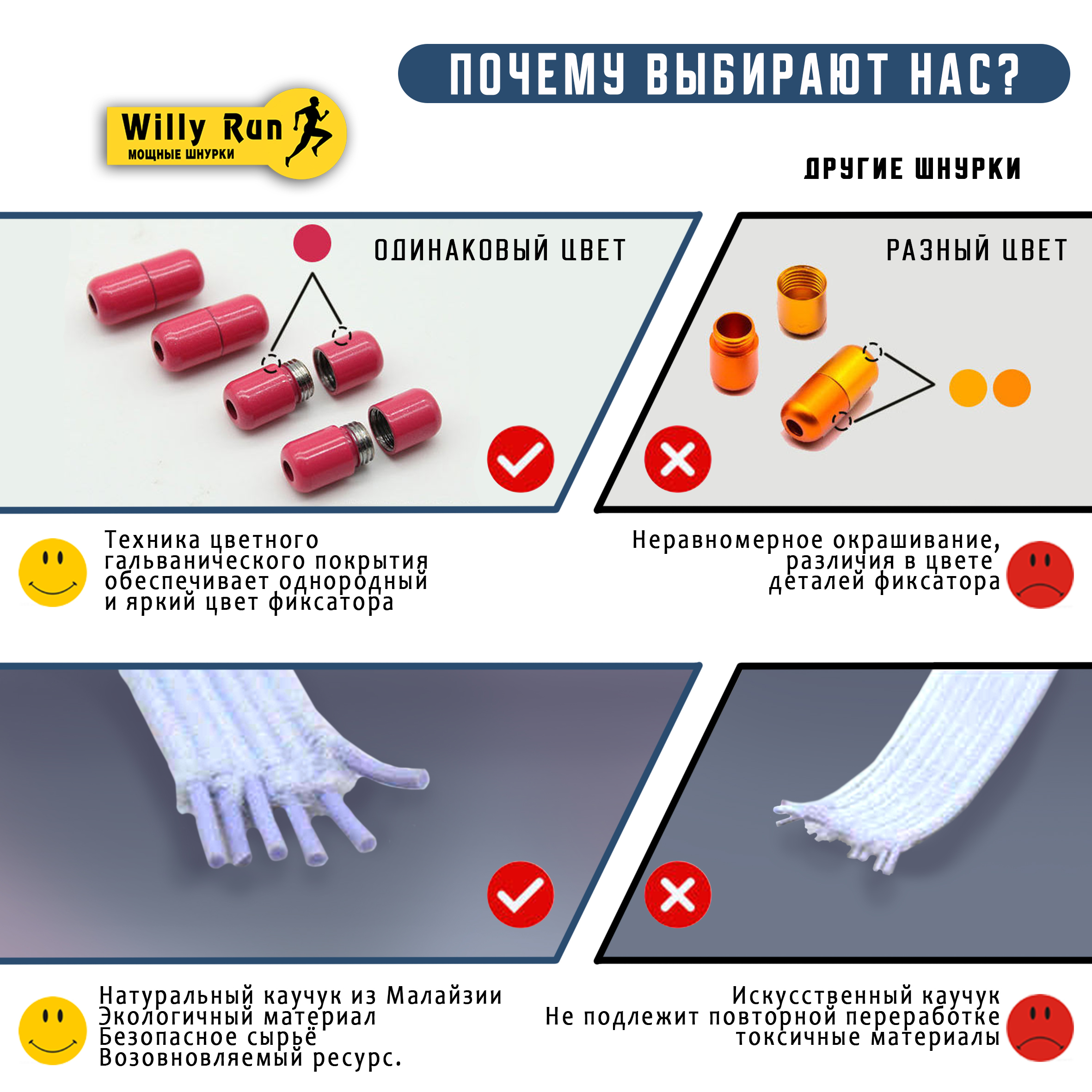 Шнурки Willy Run эластичные плоские с фиксатором без завязок быстрые ленивые для кроссовок ботинок белые