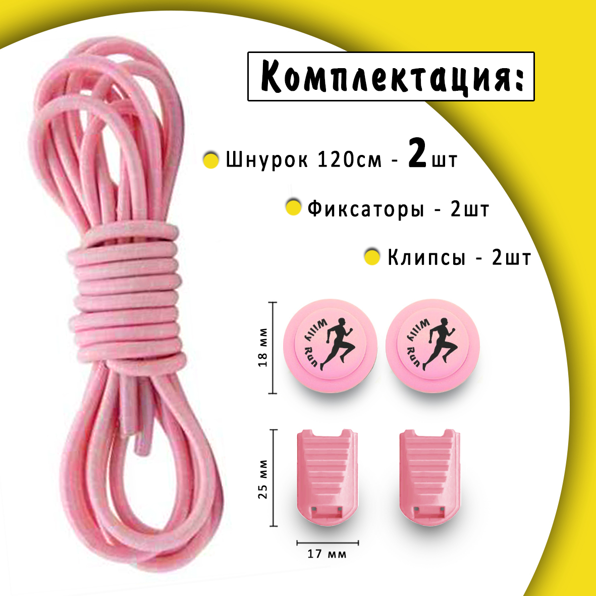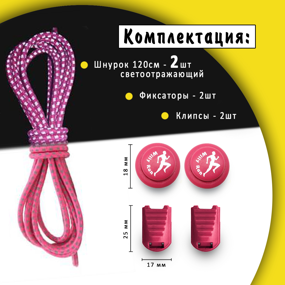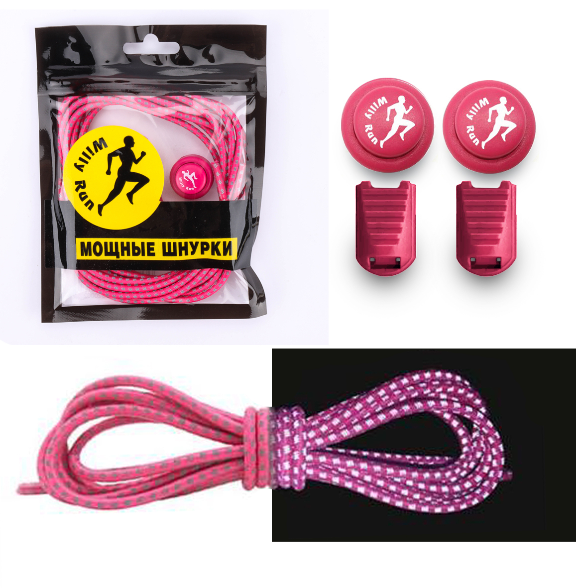 Шнурки Willy Run эластичные светоотражающие с фиксатором розовые
