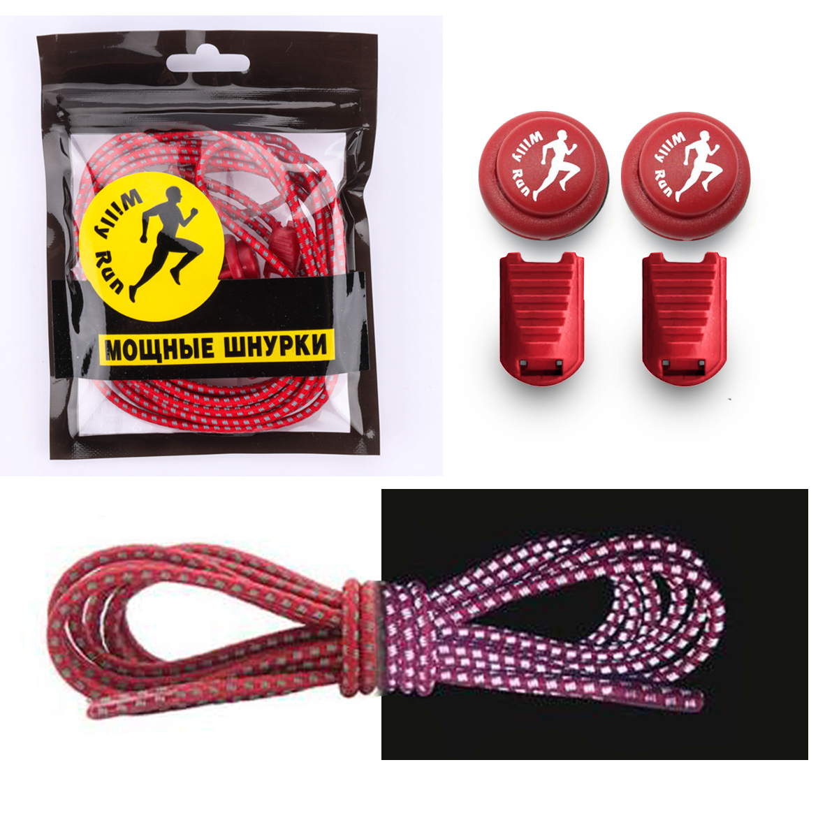 Шнурки Willy Run эластичные светоотражающие с фиксатором красные