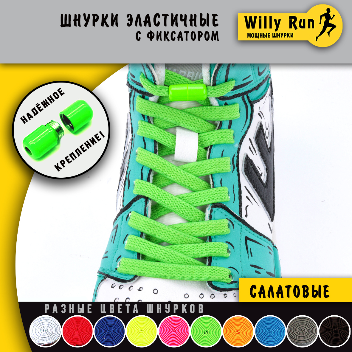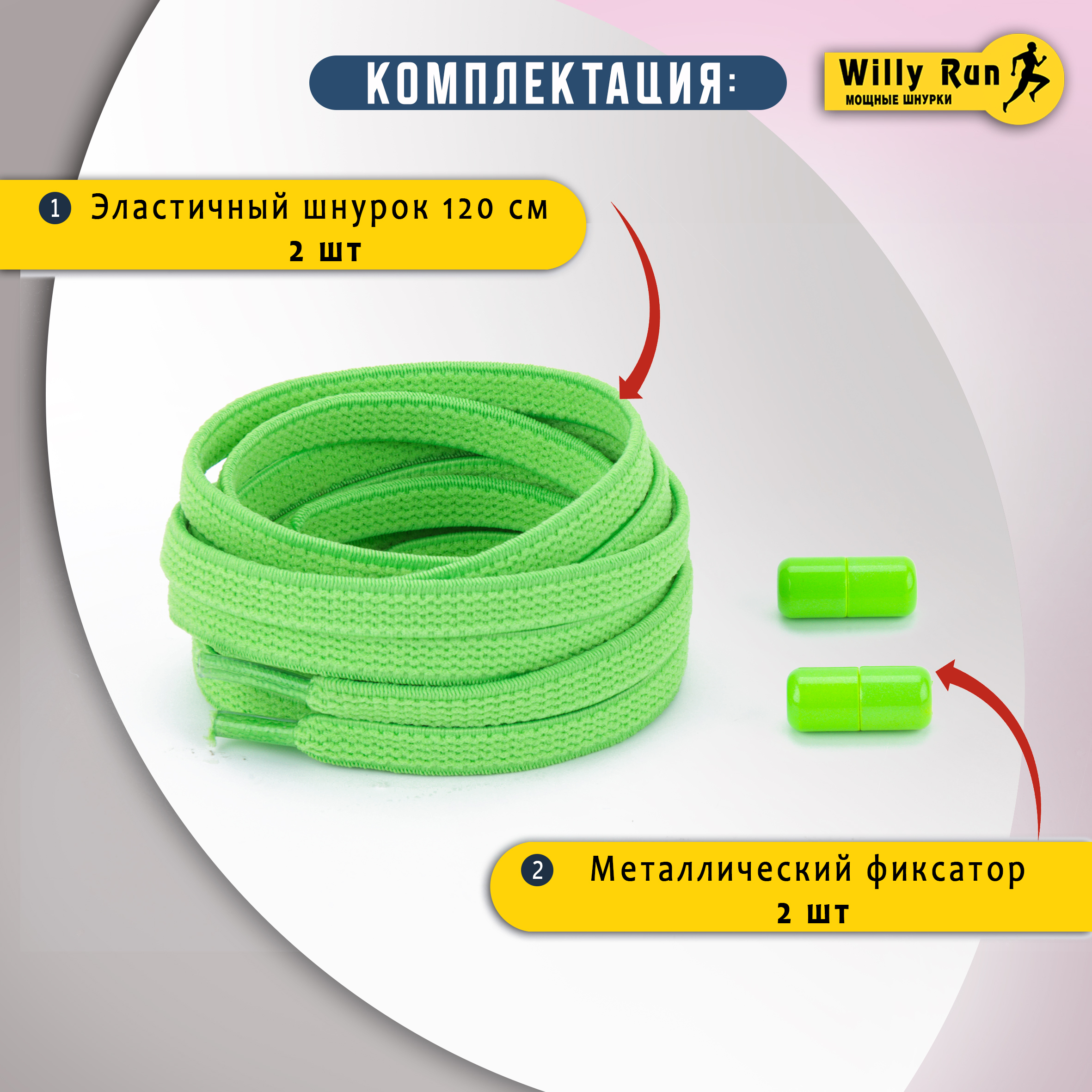 Шнурки Willy Run эластичные плоские с фиксатором без завязок быстрые ленивые для кроссовок ботинок салатовые