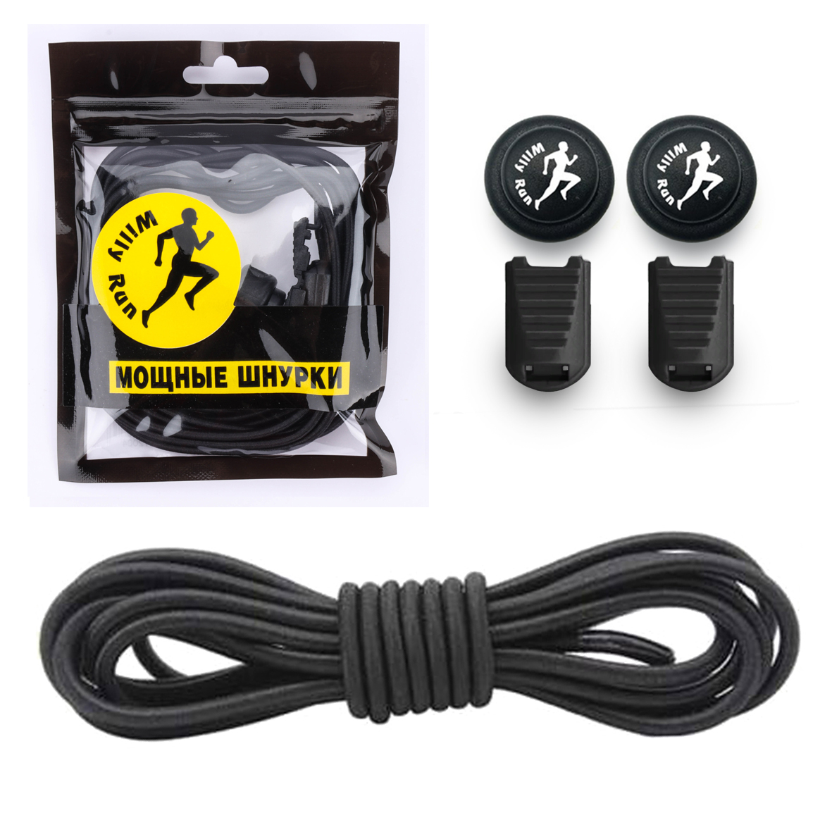 Шнурки Willy Run эластичные с фиксатором черные однотонные